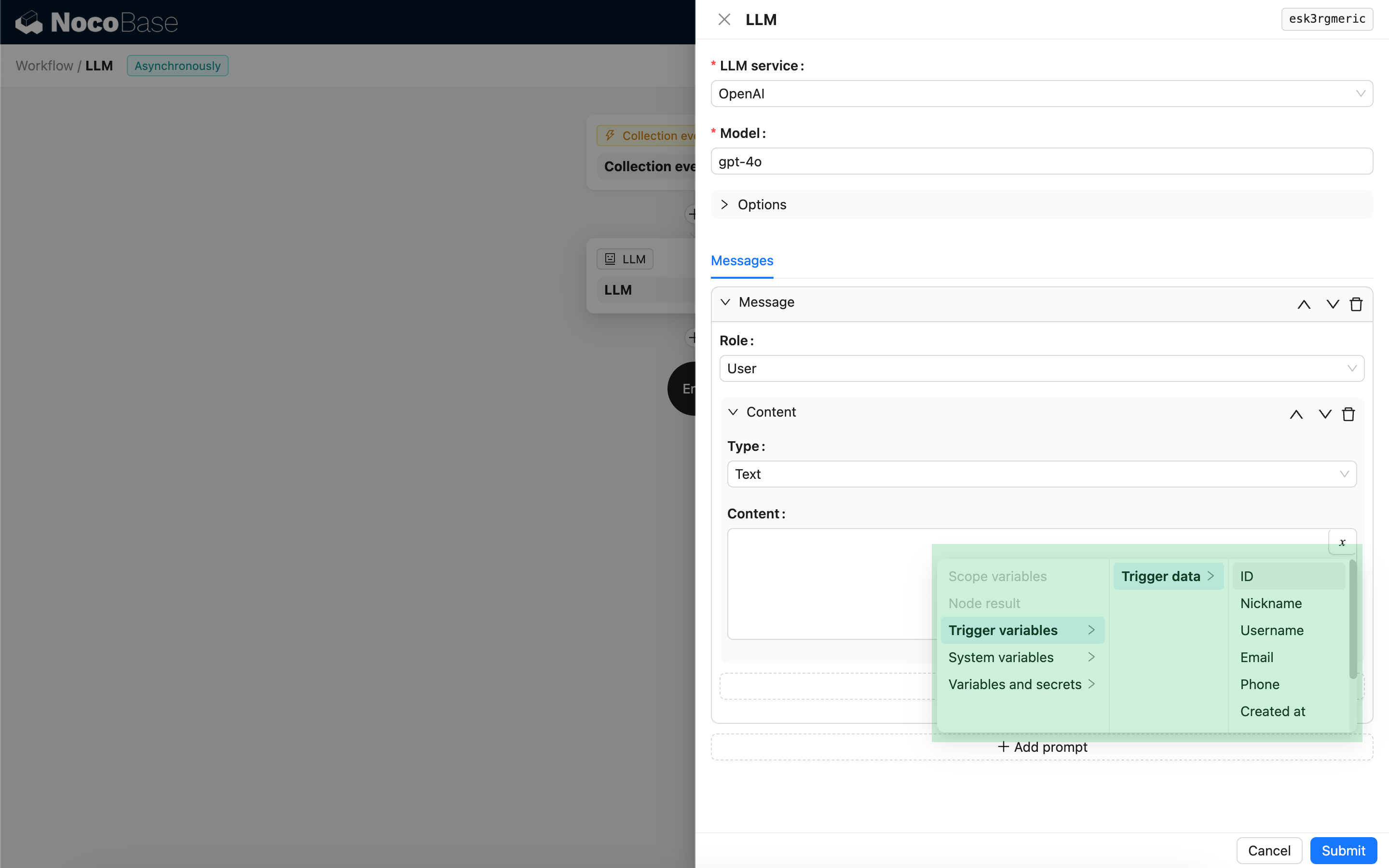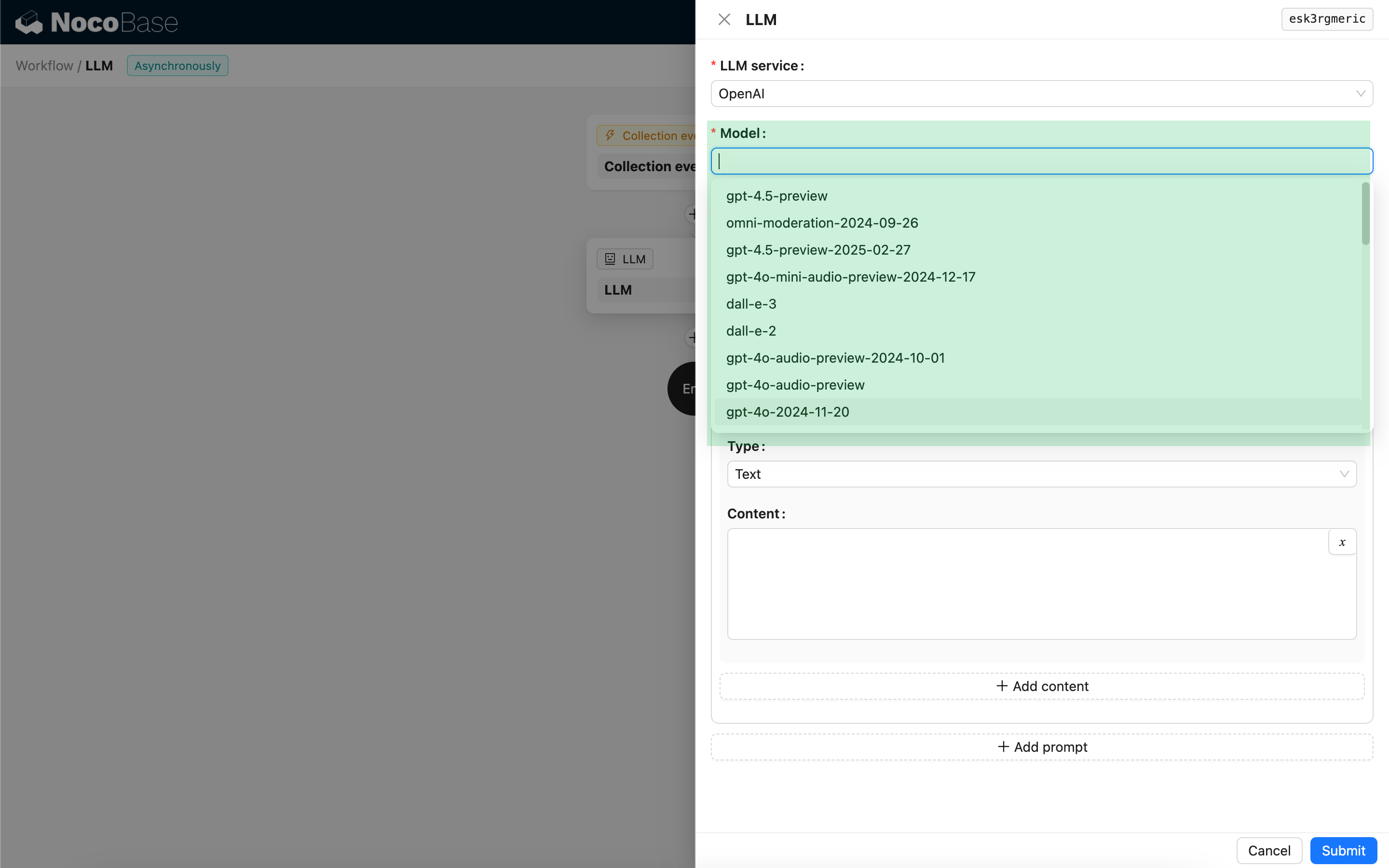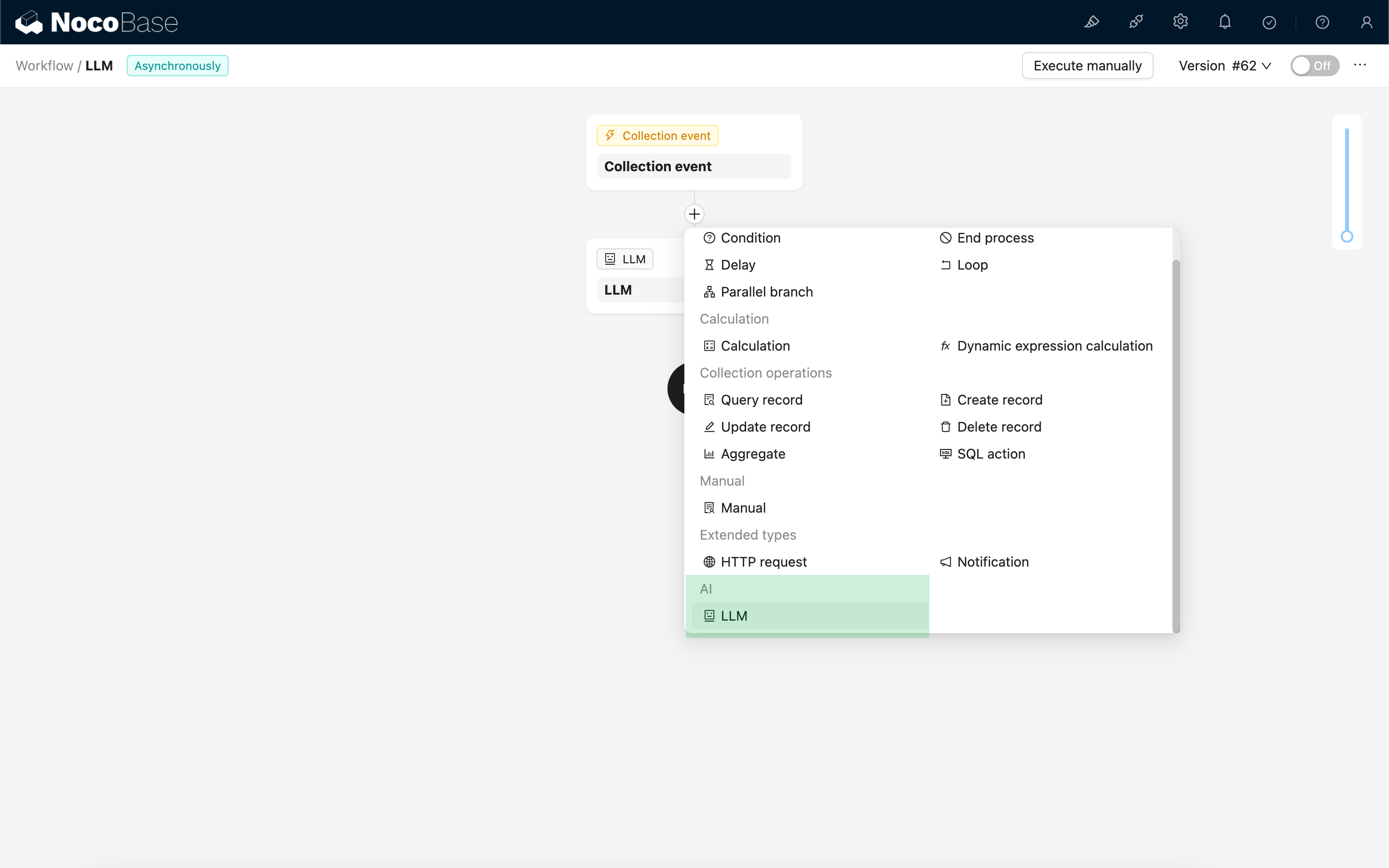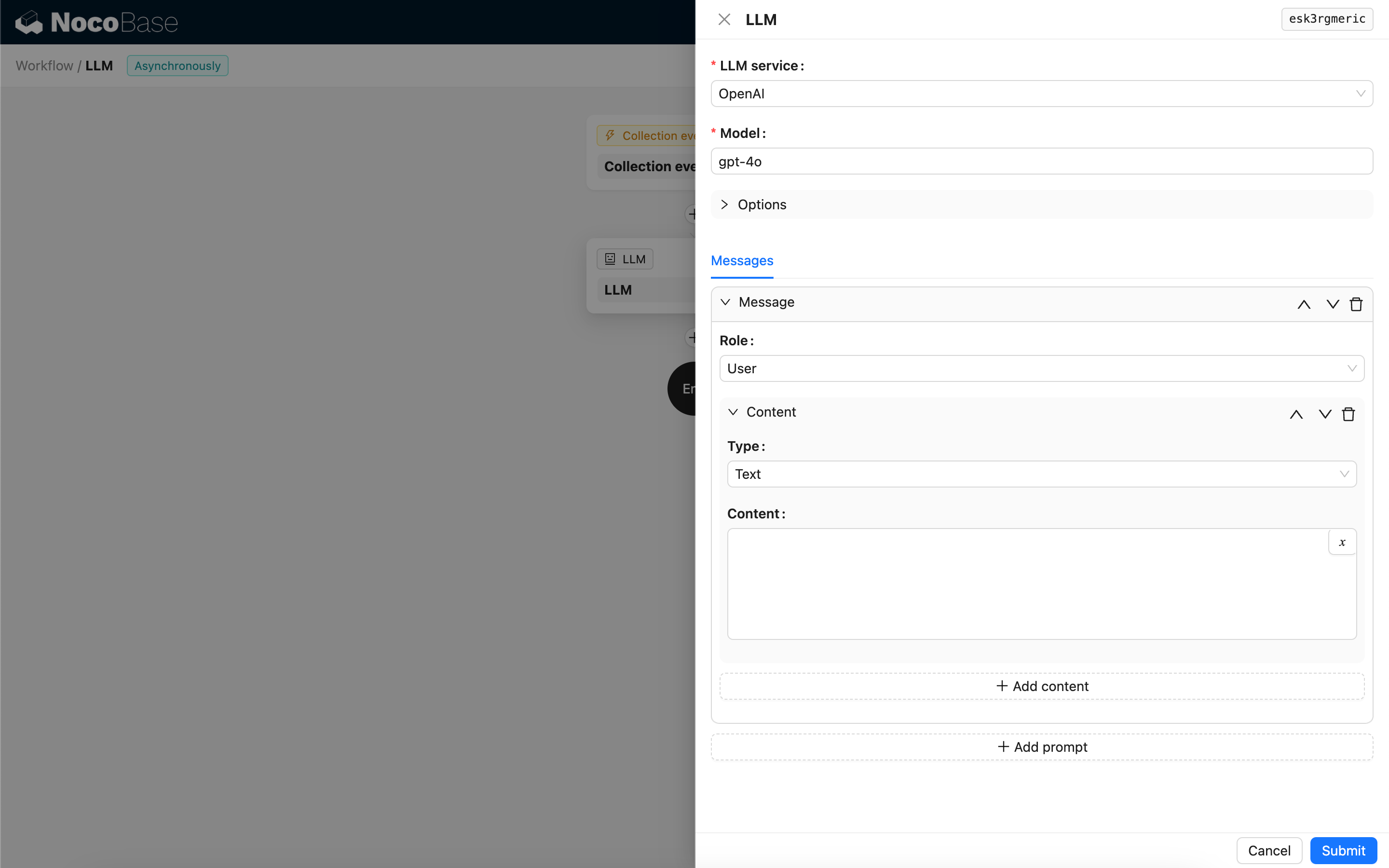 Since conversations with LLM services are often time-consuming, the LLM node can only be used in asynchronous workflows.