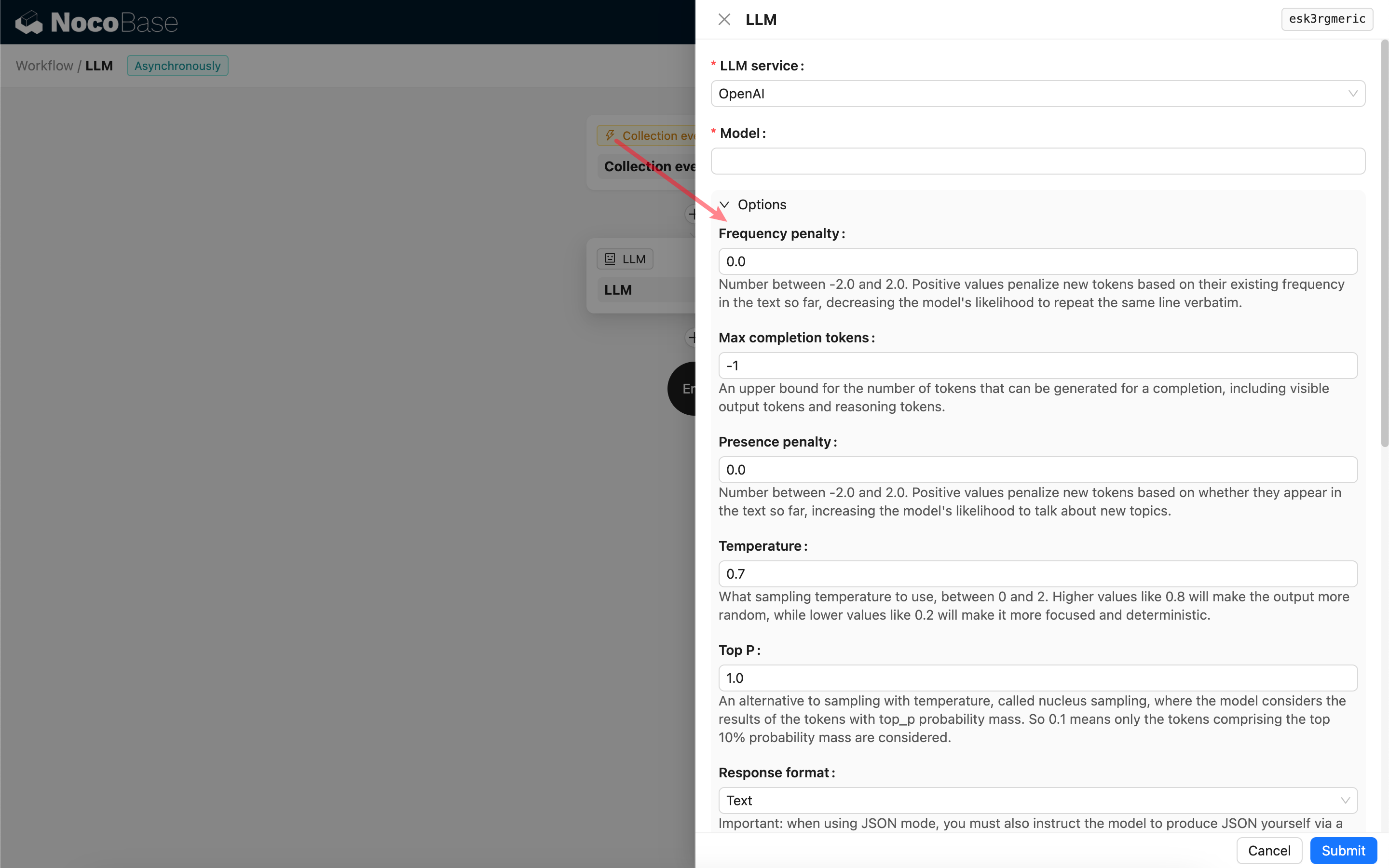 It's worth noting the Response format setting. This option is used to prompt the large model for the format of its response, which can be text or JSON. If you select JSON mode, be aware of the following: