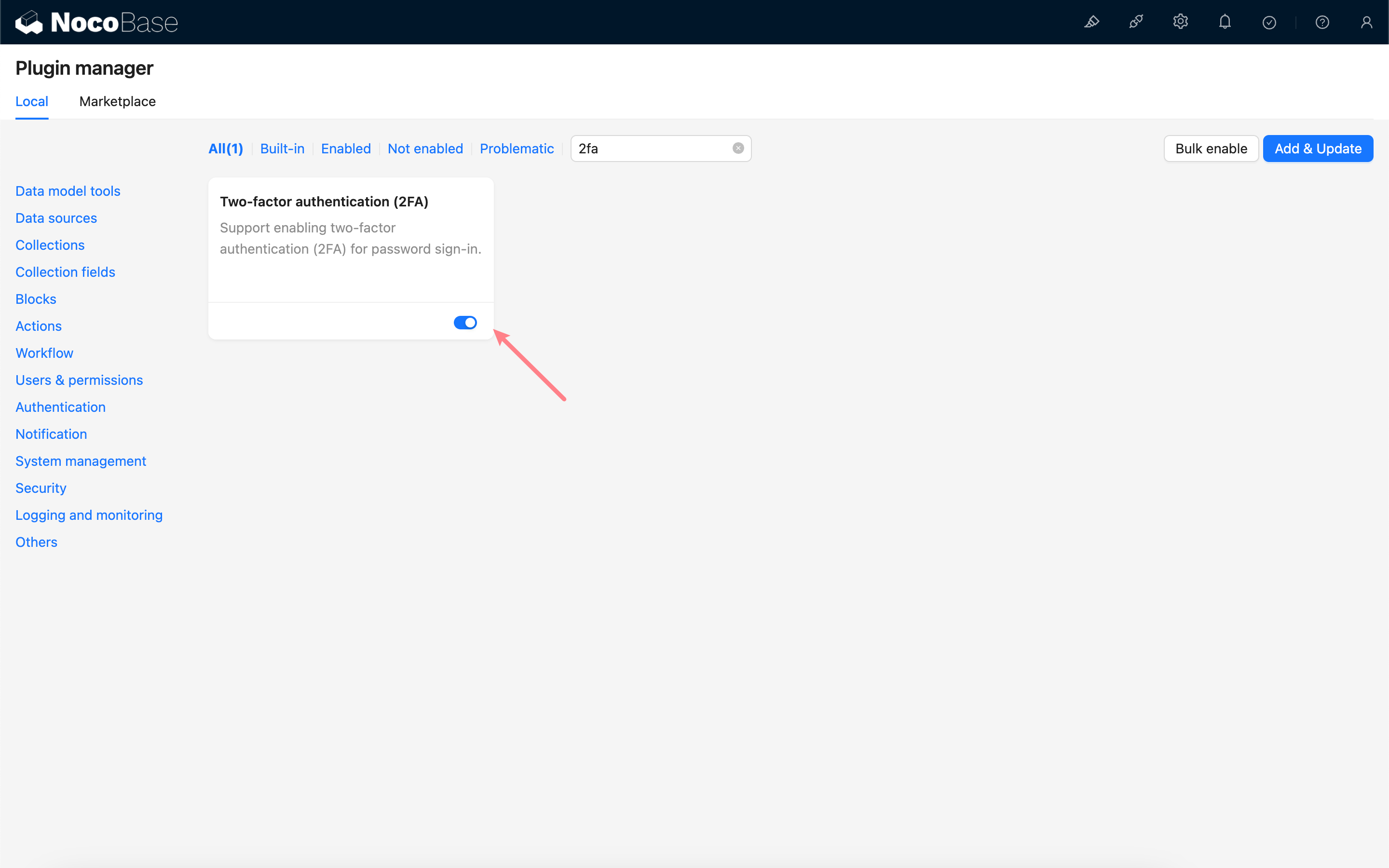 After enabling the plugin, a 2FA configuration sub-page will be added to the Authenticator management page.
