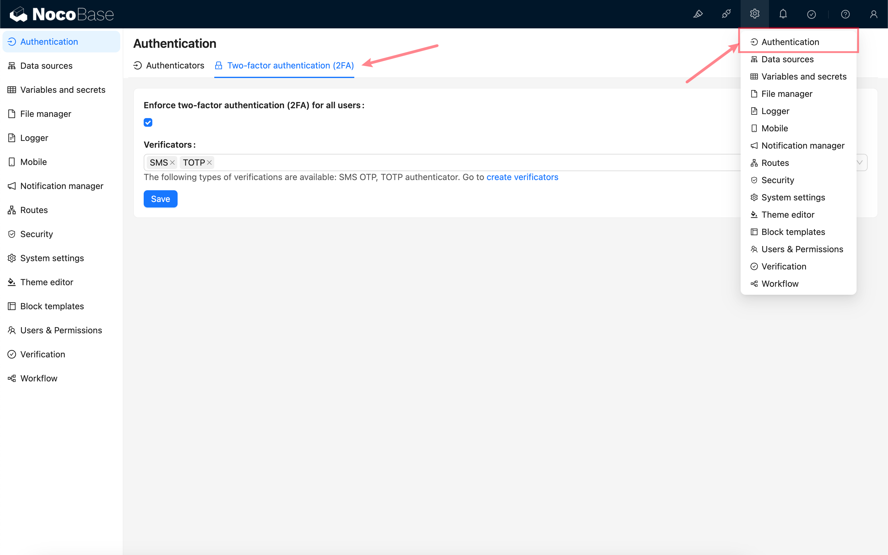 Administrators must check the "Enforce two-Factor authentication (2FA) for all users" option and select an available type of authenticator to bind. If no authenticators are available, please first create a new authenticator on the verification management page. See Verification for details.