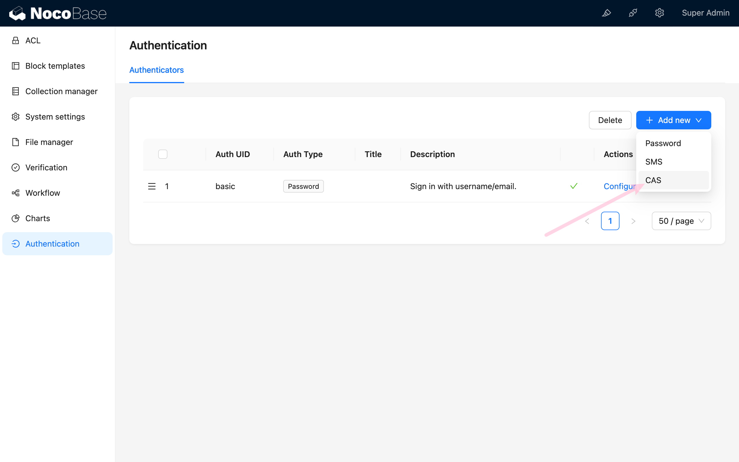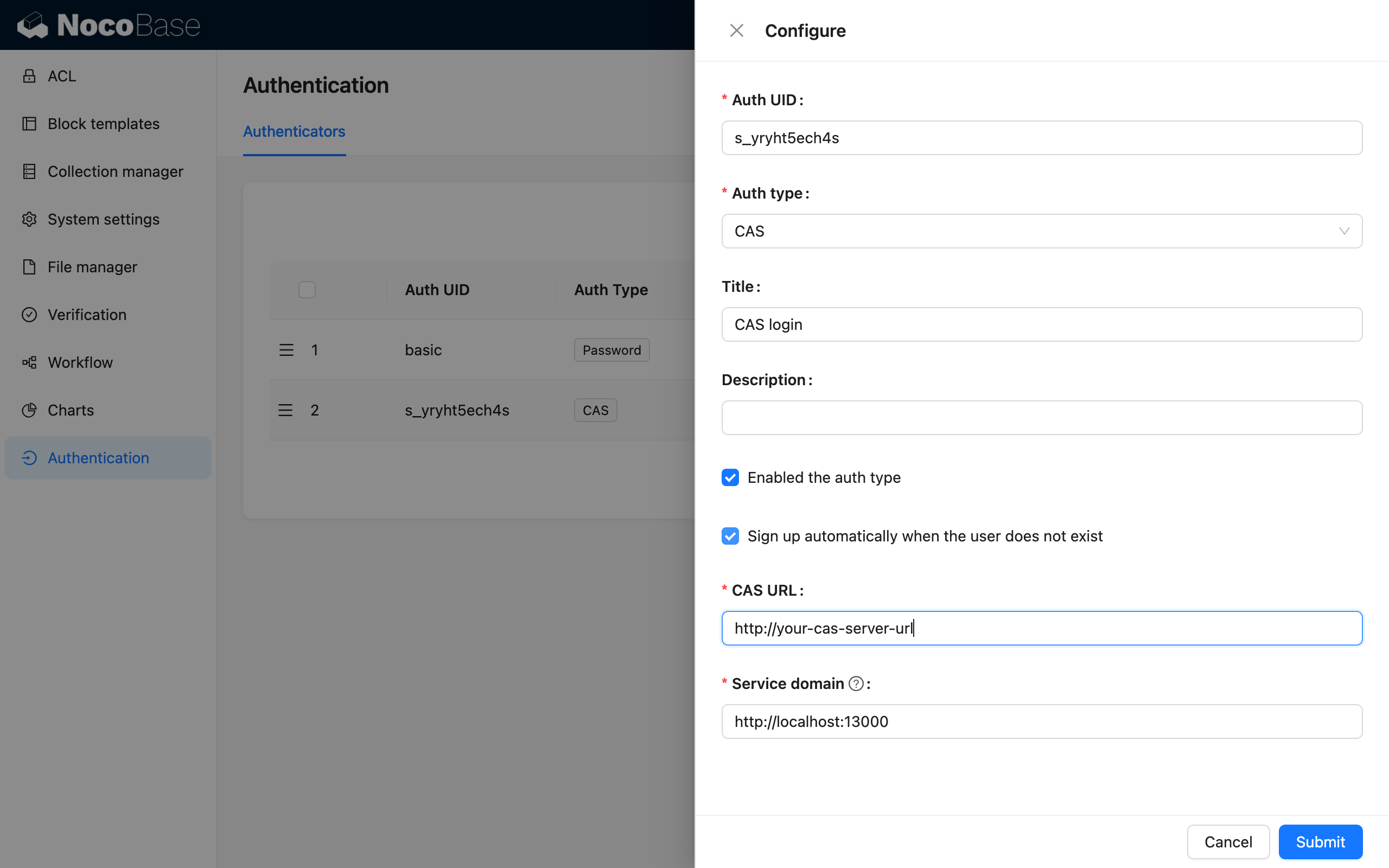 The Auth: CAS plugin follows the CAS (Central Authentication Service) protocol standard, allowing users to sign in to NocoBase using accounts provided by third-party identity authentication service providers (IdP).