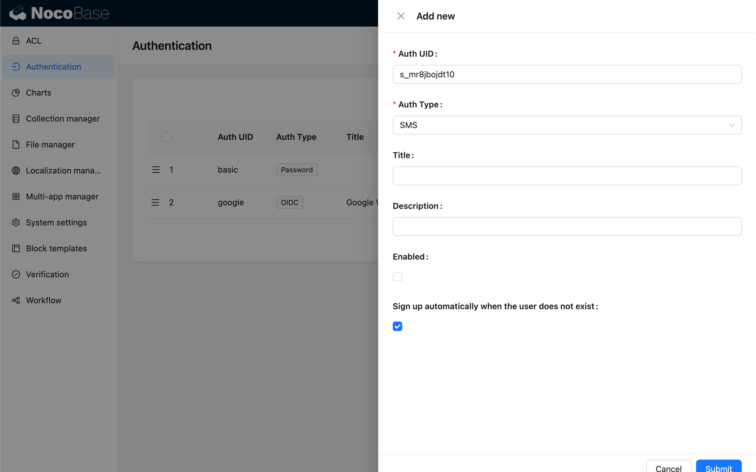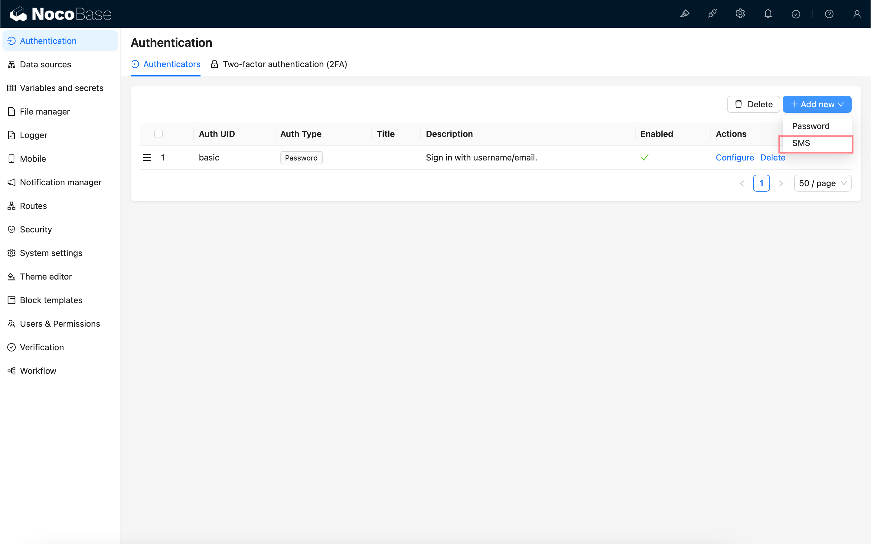 The SMS authentication plugin supports users to register through SMS and log in to NocoBase.