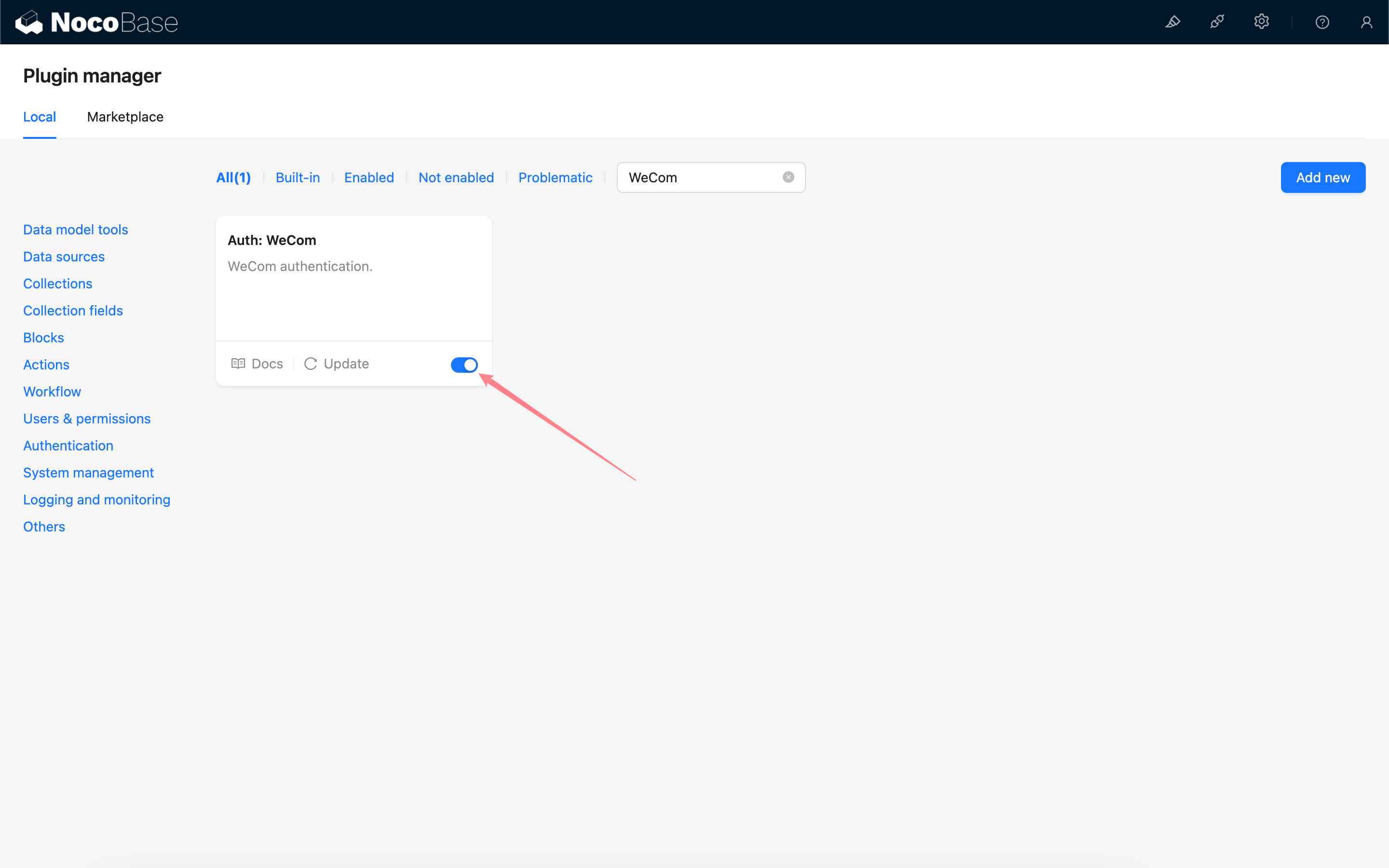 The WeCom plugin allows users to log in to NocoBase using their WeCom accounts.