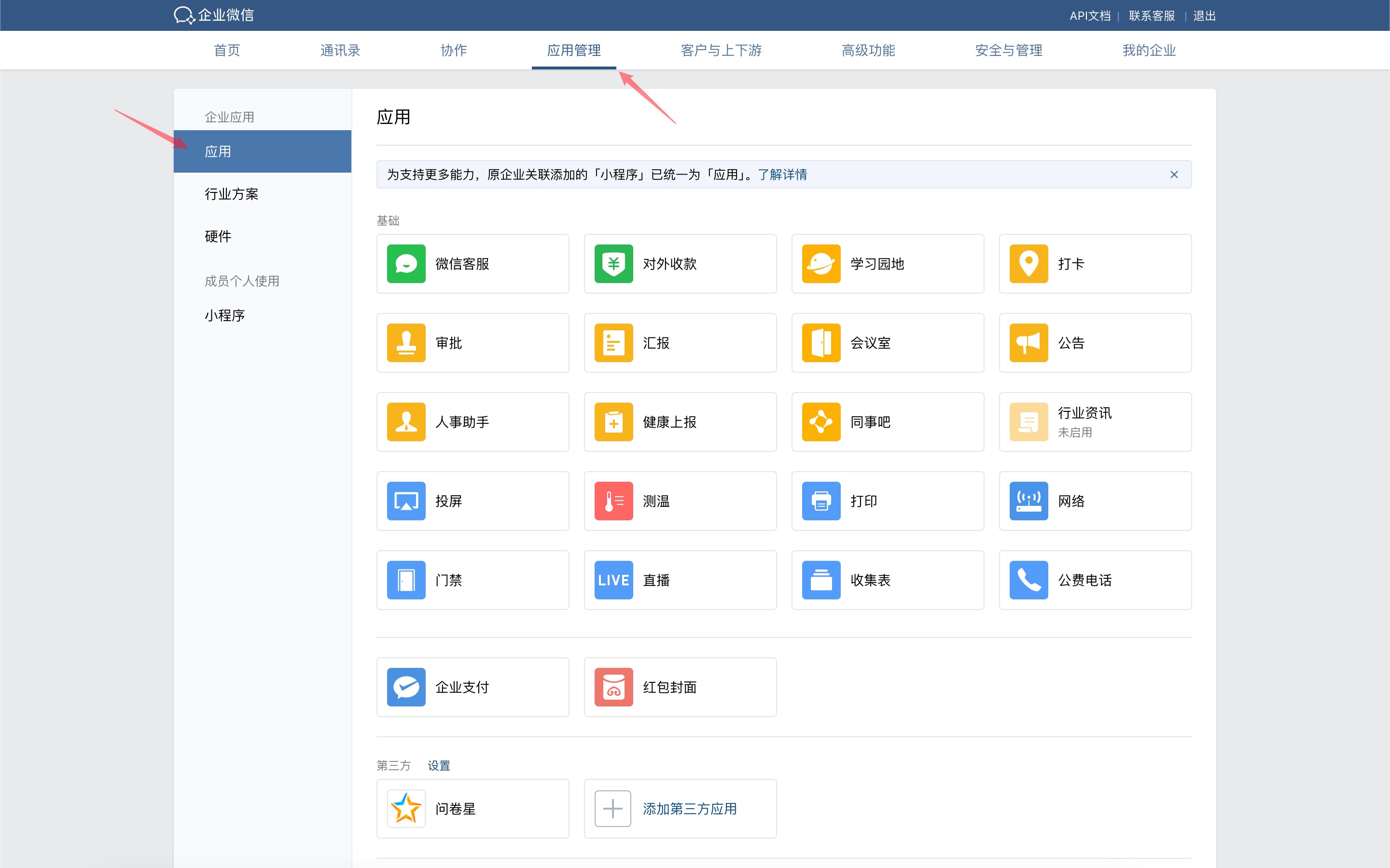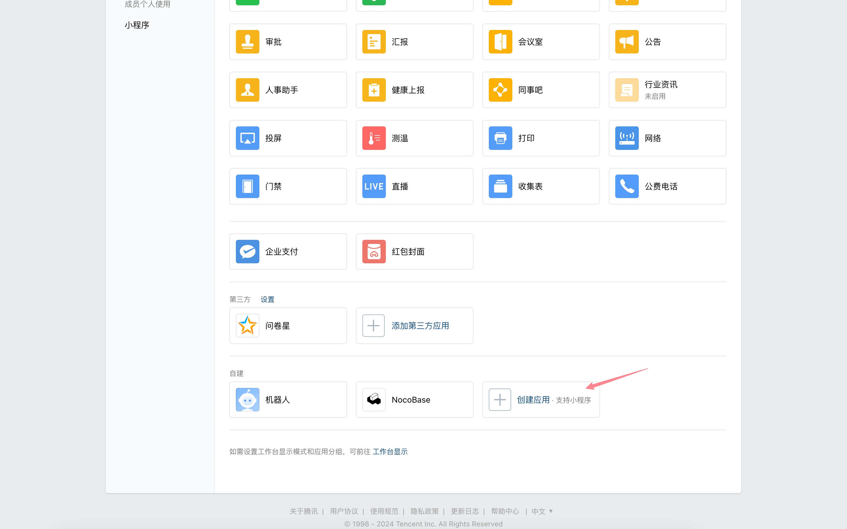 Go to the WeCom admin console to create a custom-built application.