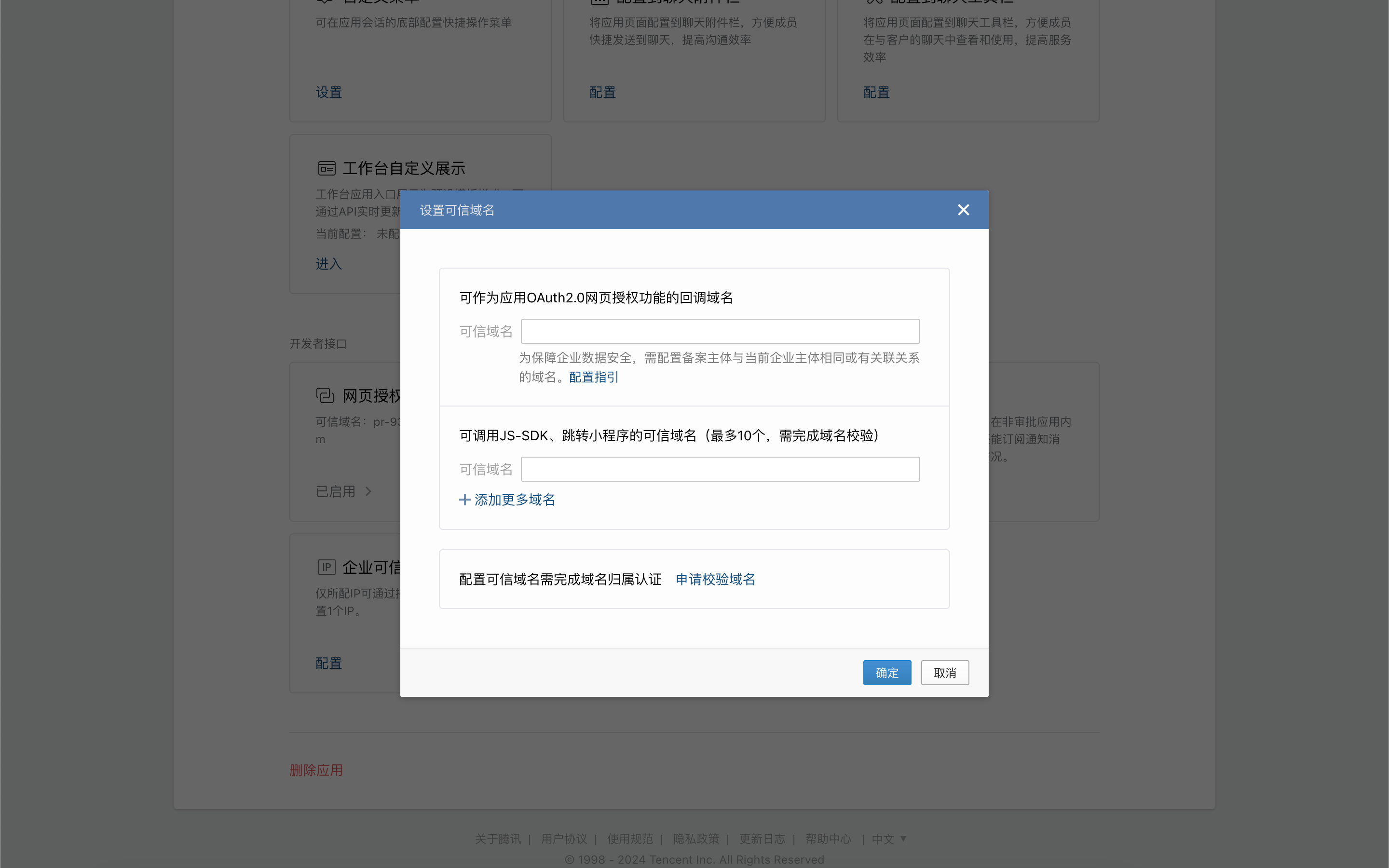 Set and verify the callback domain for the app's OAuth2.0 web authorization feature.