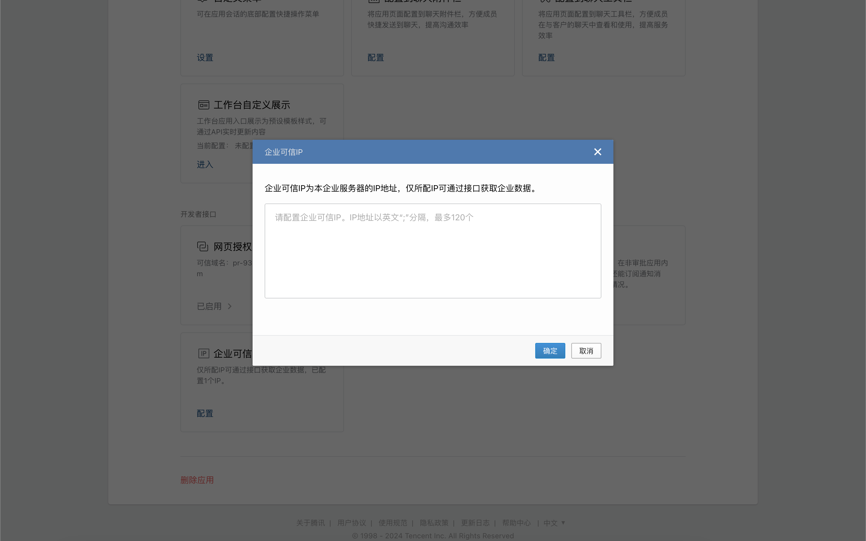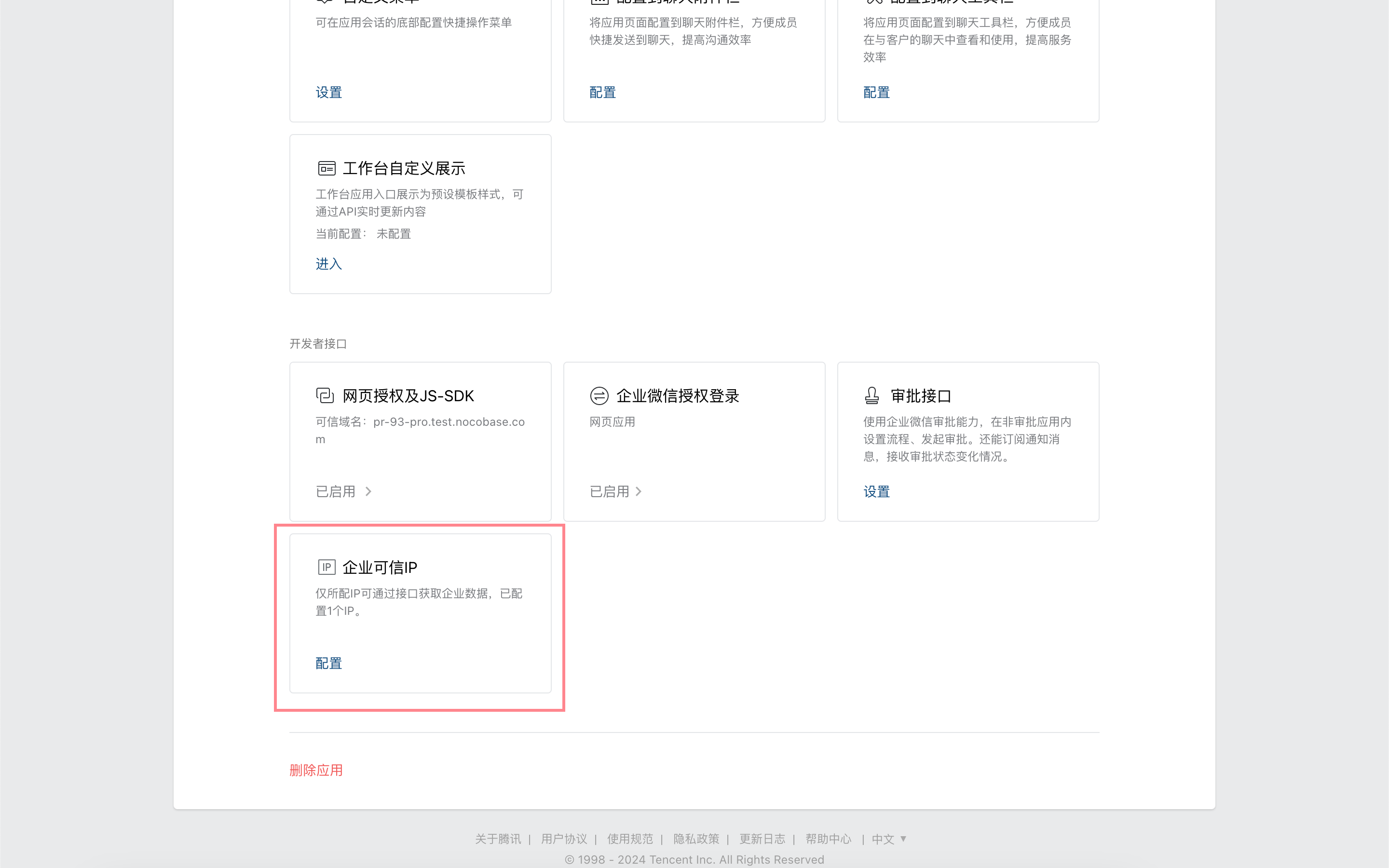 On the app details page, click "Corporate Trusted IP".
