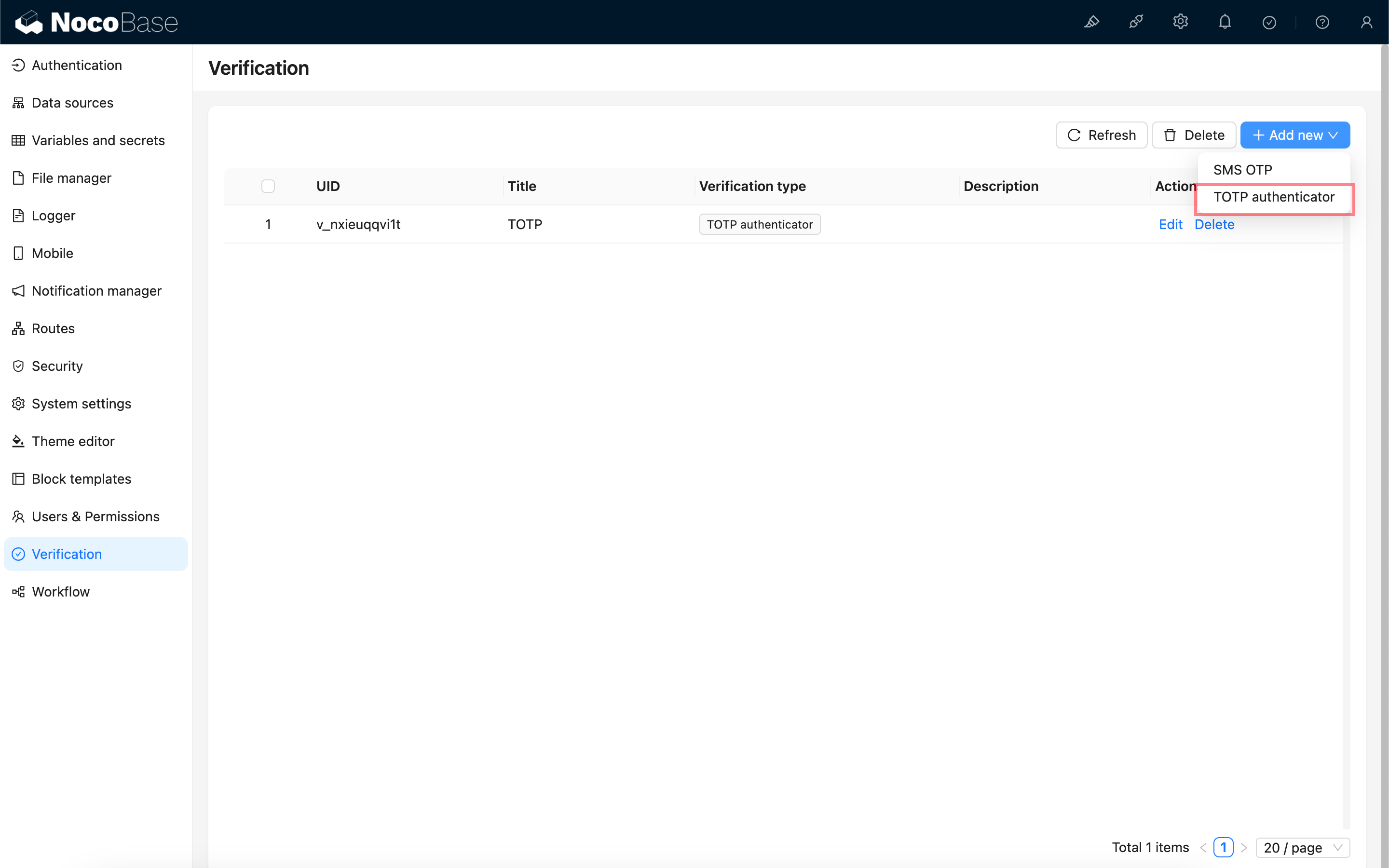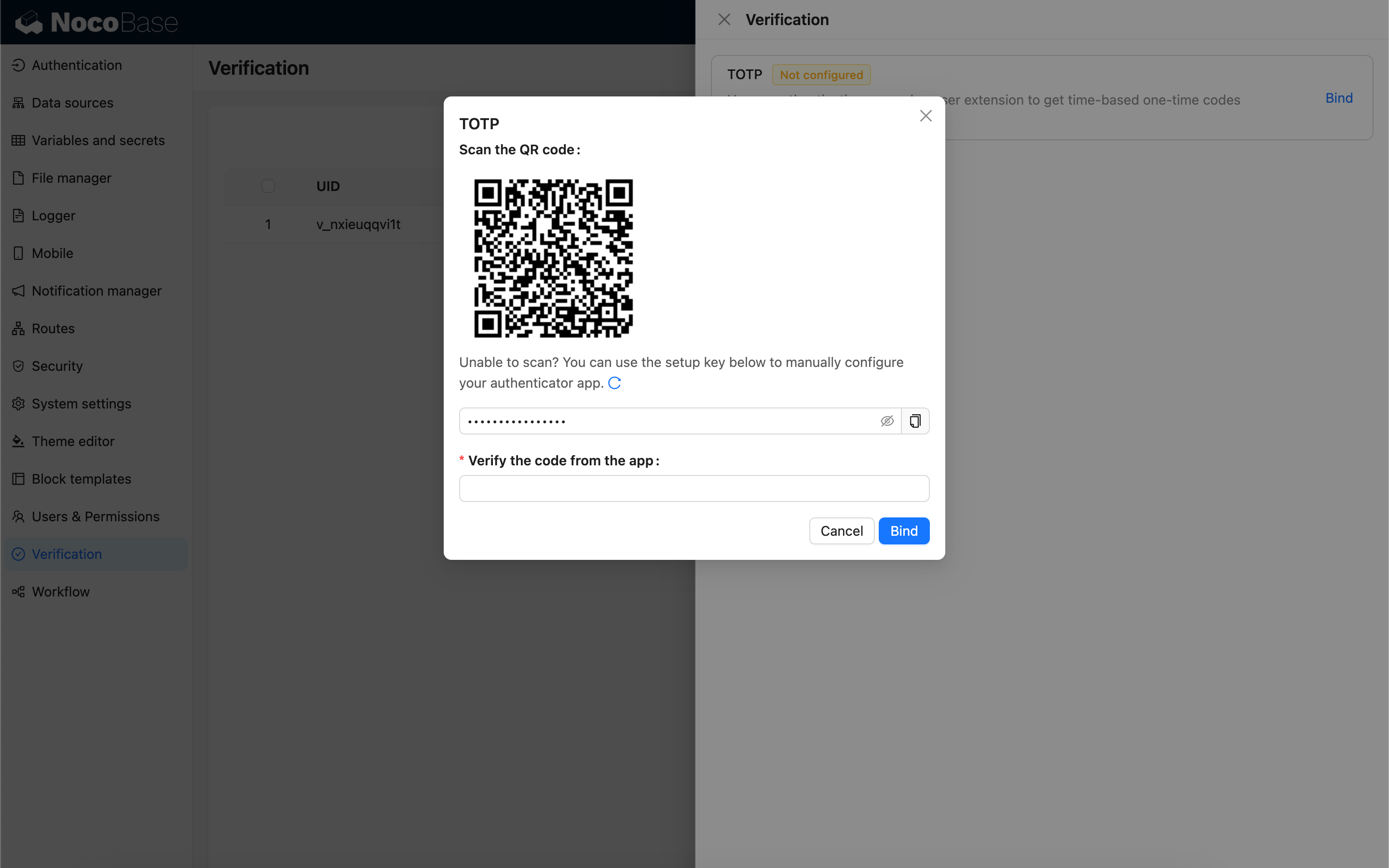 After adding the authenticator, users can bind the TOTP authenticator in their personal verification management area.