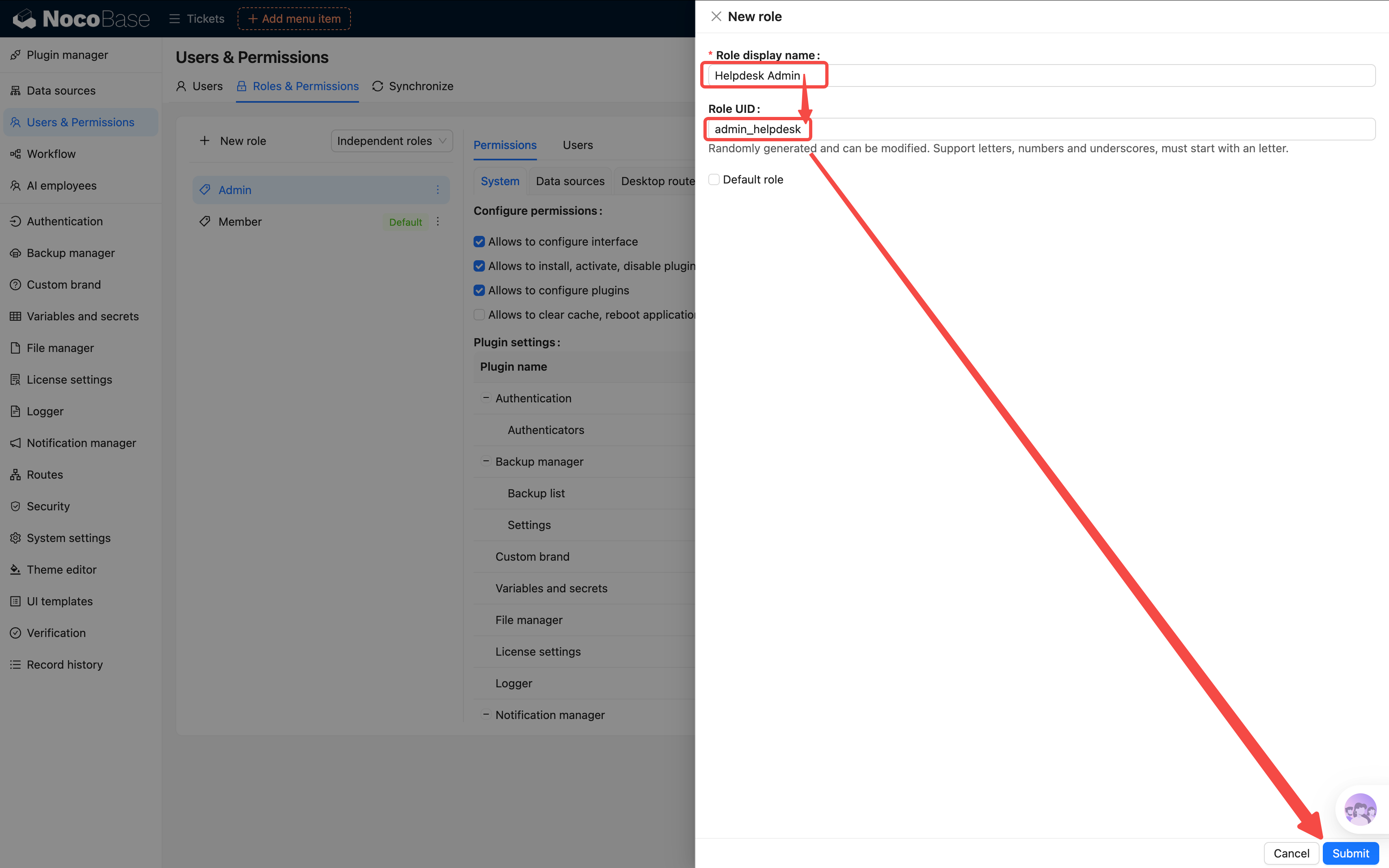 但这三个内置角色不够用。我们的工单系统需要更细的划分,所以接下来我们创建 3 个自定义角色。