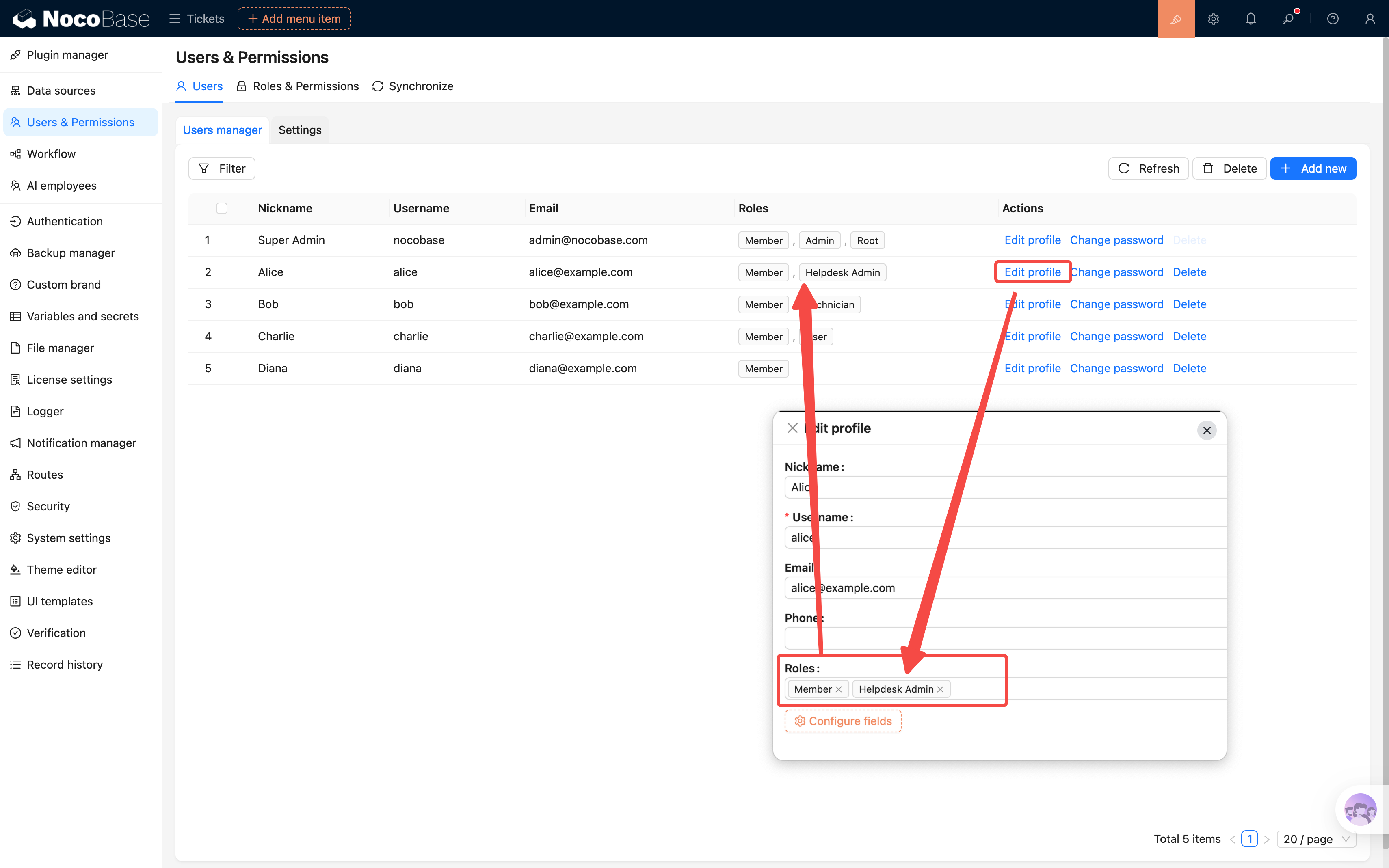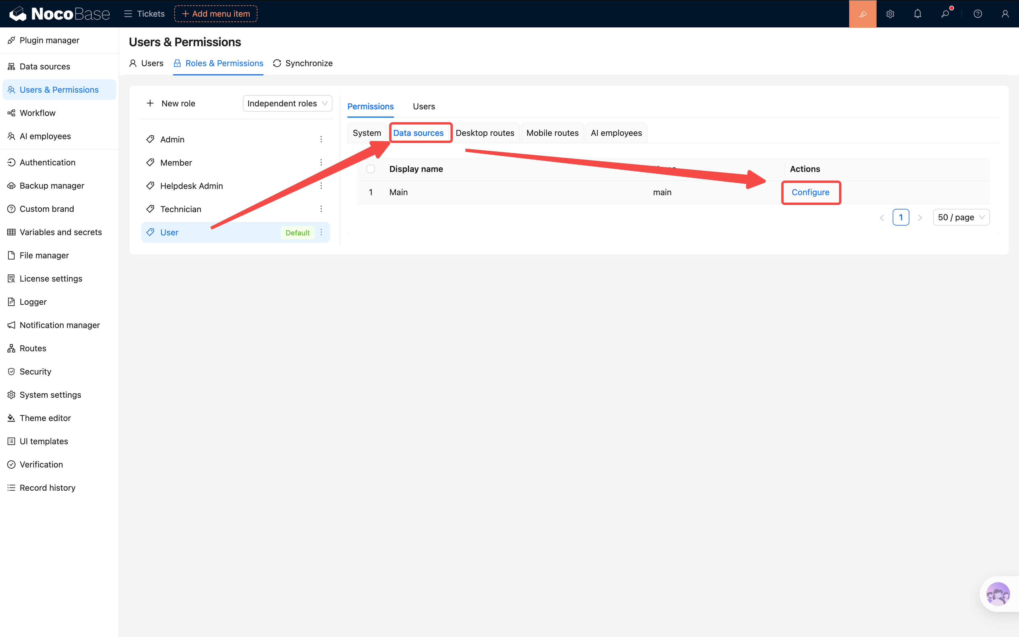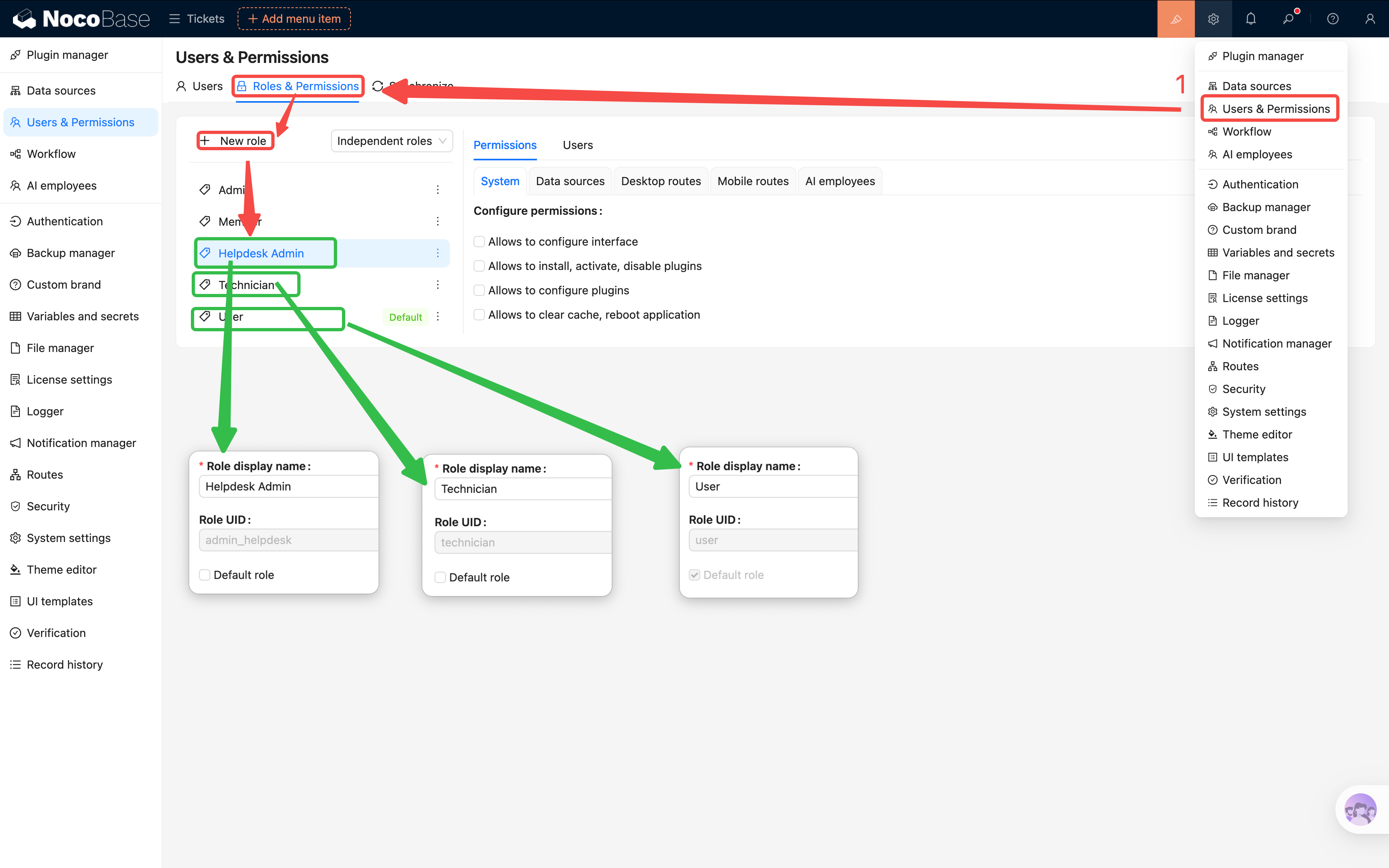在 NocoBase 里,角色就是一组权限的集合。你不需要给每个用户单独配权限,而是先定义好几个角色,再把用户丢进对应的角色里。