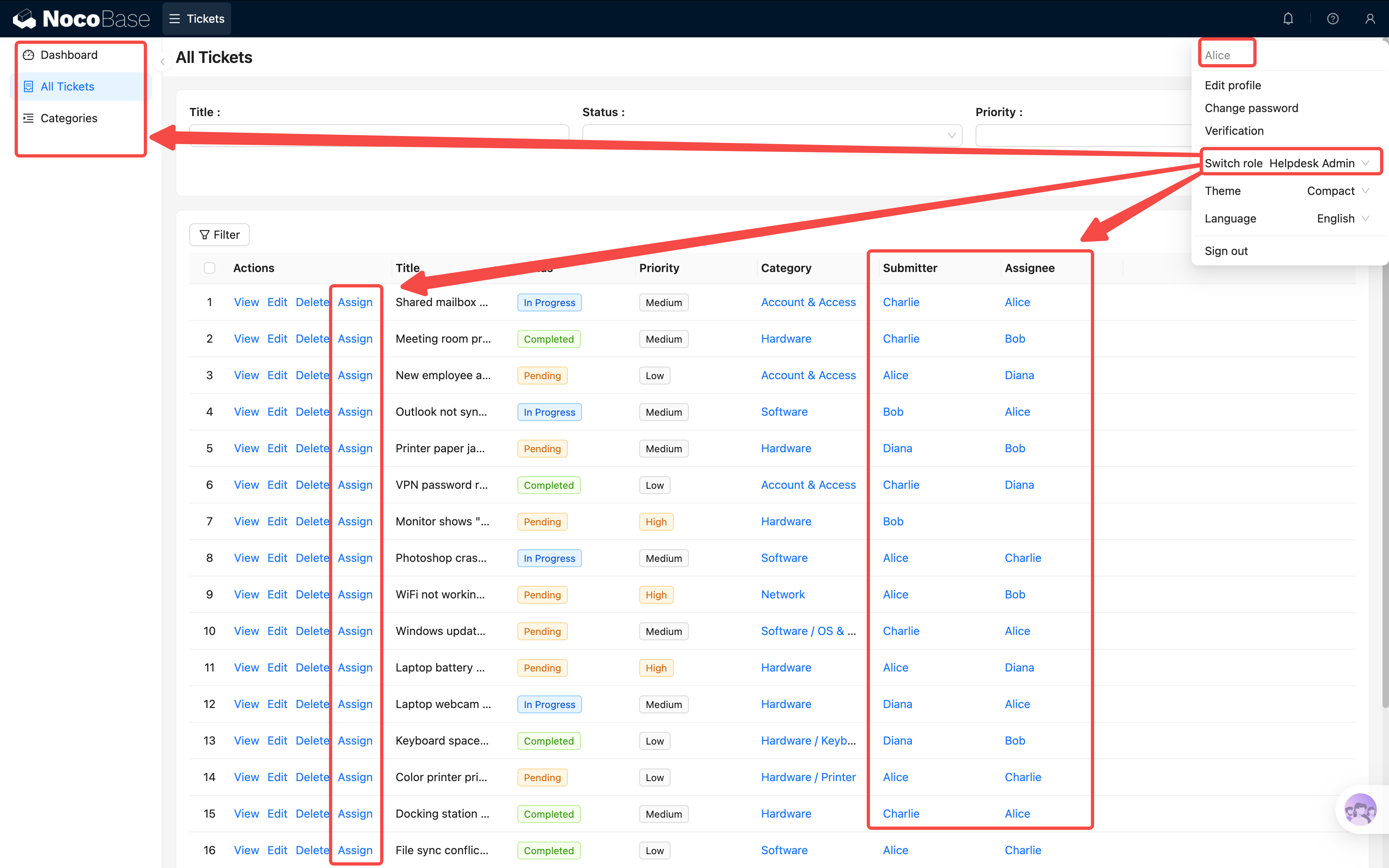 | 管理员 | admin-helpdesk | 能看所有工单,管理分类,分配处理人 |