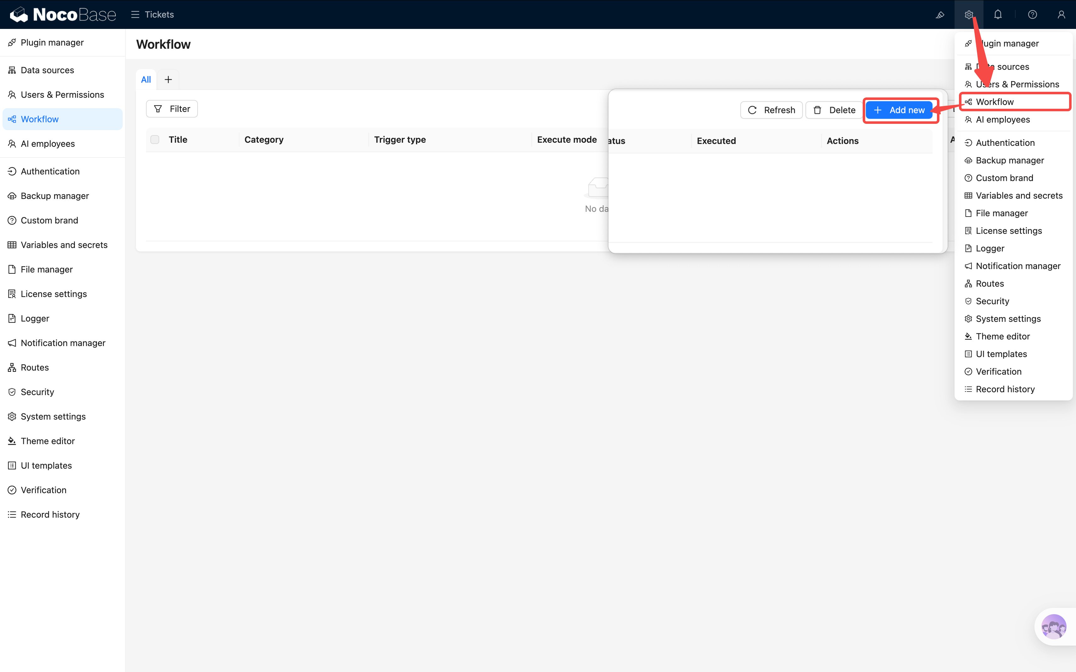 NocoBase 的工作流是内置插件,不需要额外安装,开箱即用。