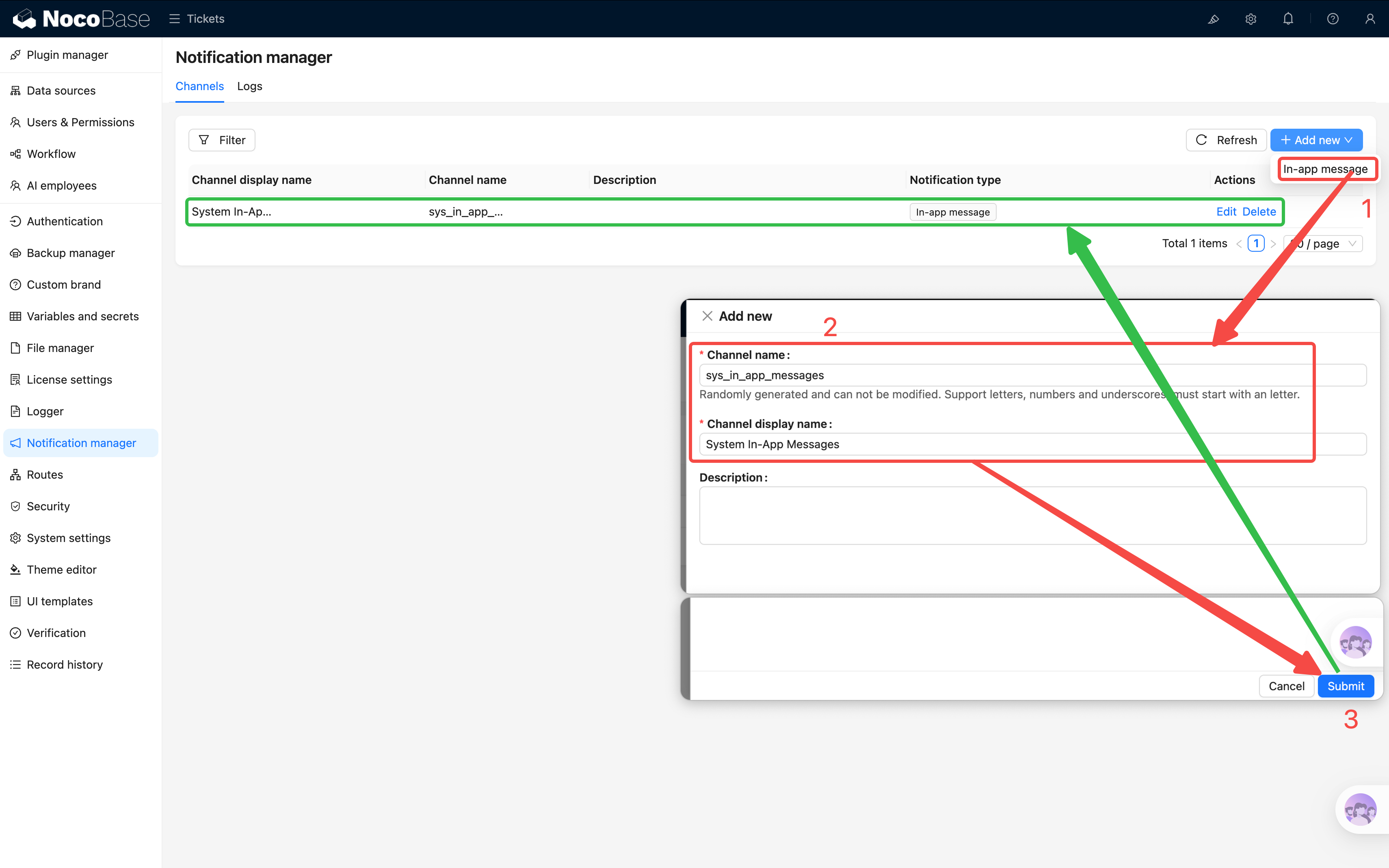 NocoBase 支持多种通知渠道类型: