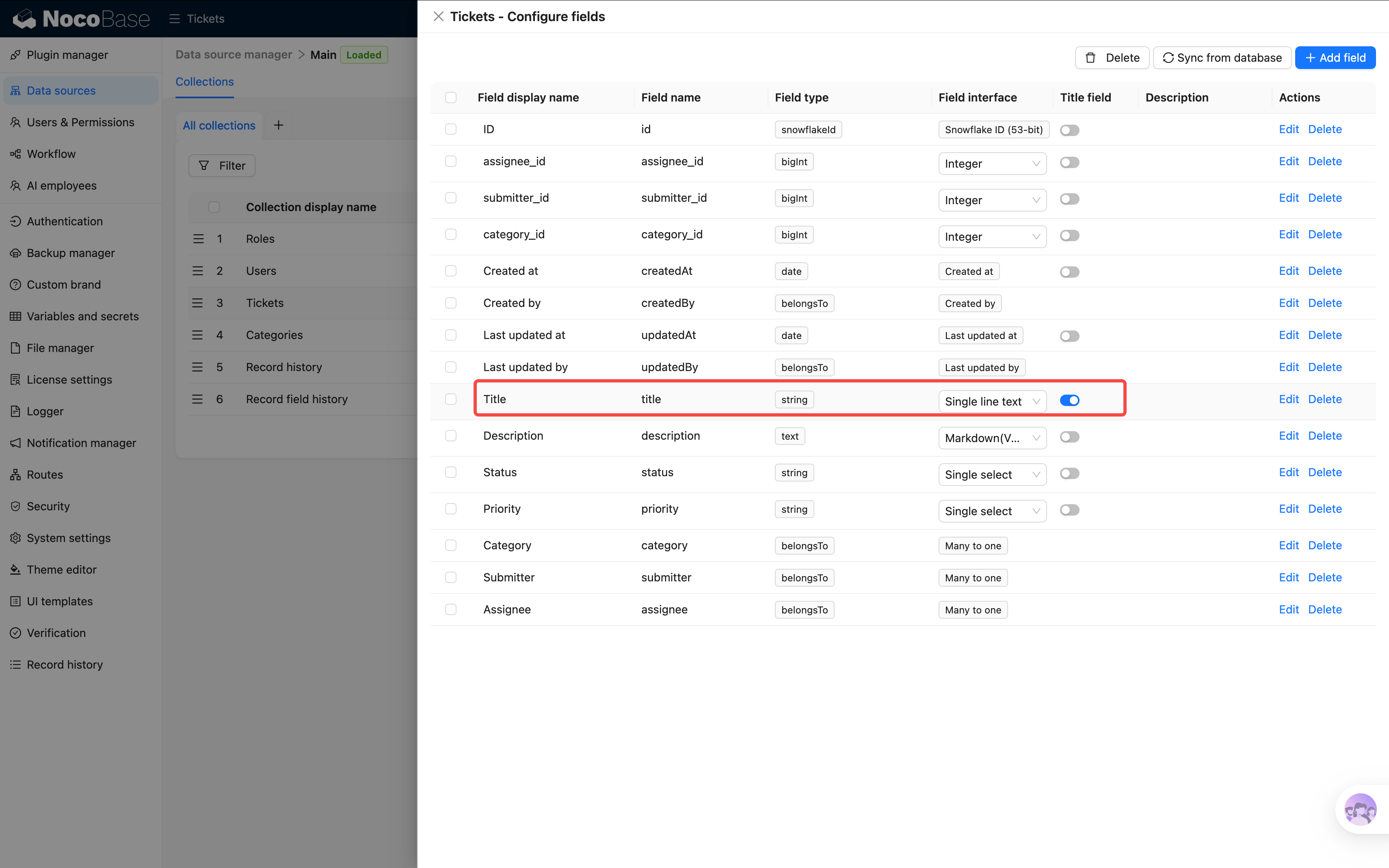 如果工单选择栏中展示的是 id,在数据源 > 数据表 > 工单 中,将 “标题” 列设置为标题字段即可