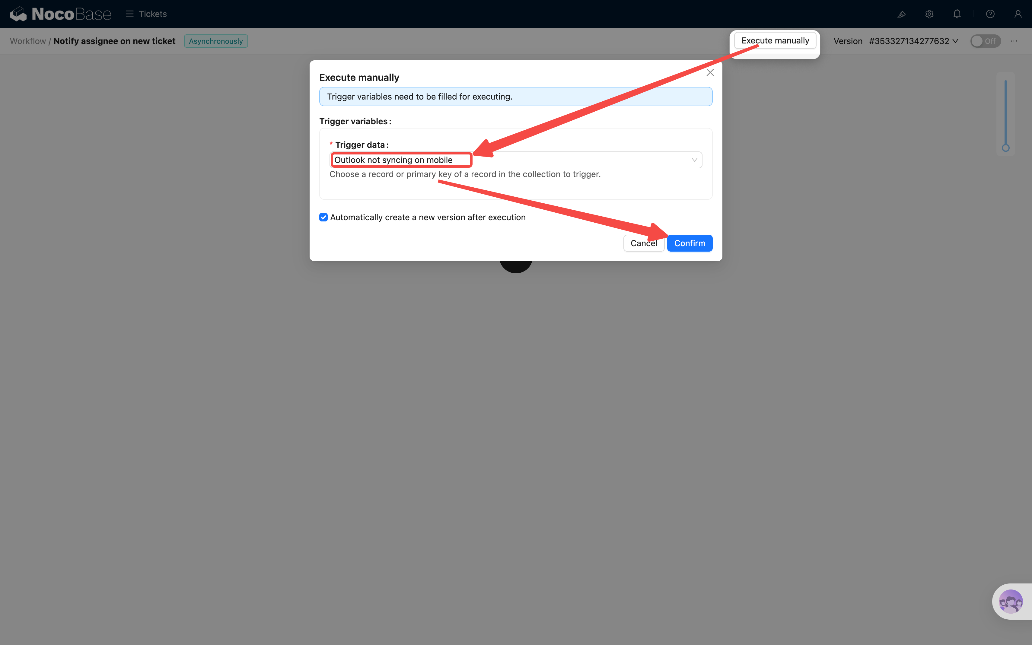先别急着启用——工作流提供了 手动执行 功能,可以用指定数据测试流程是否正确: