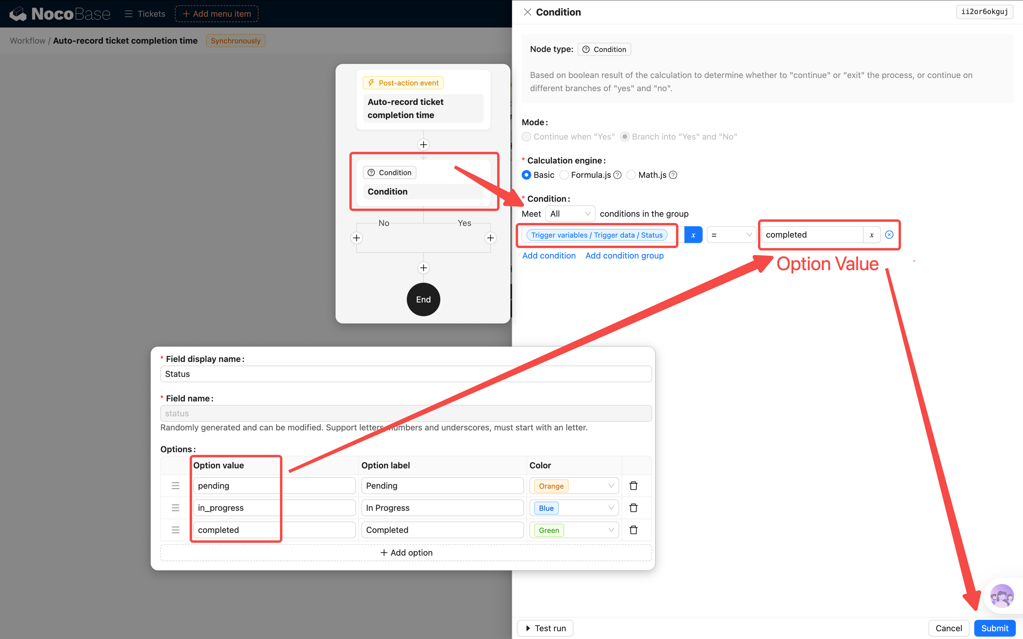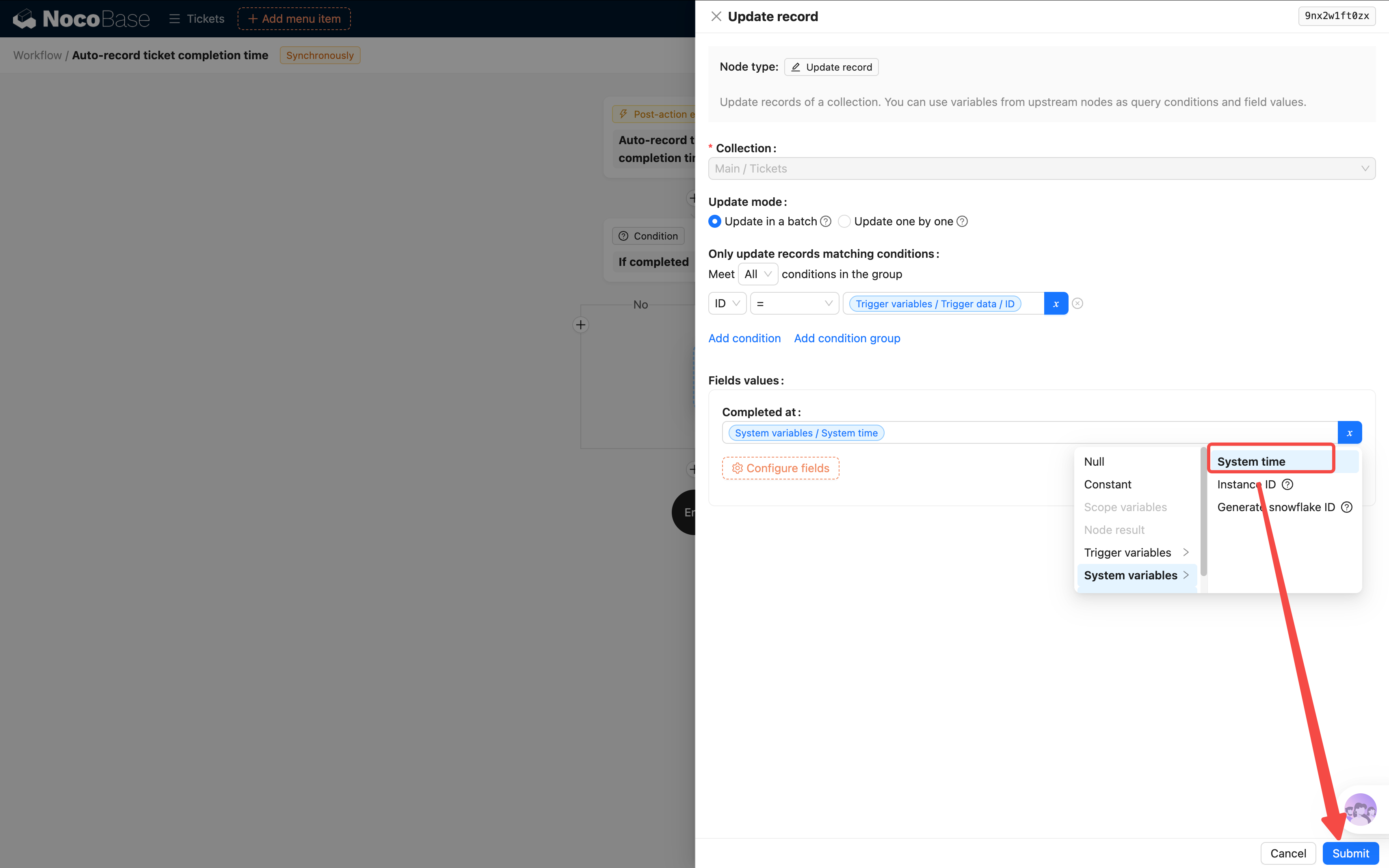 需求:当工单状态变为"已完成"时,系统自动在"完成时间"字段填入当前时间。这样不需要手动记录,也不会忘。