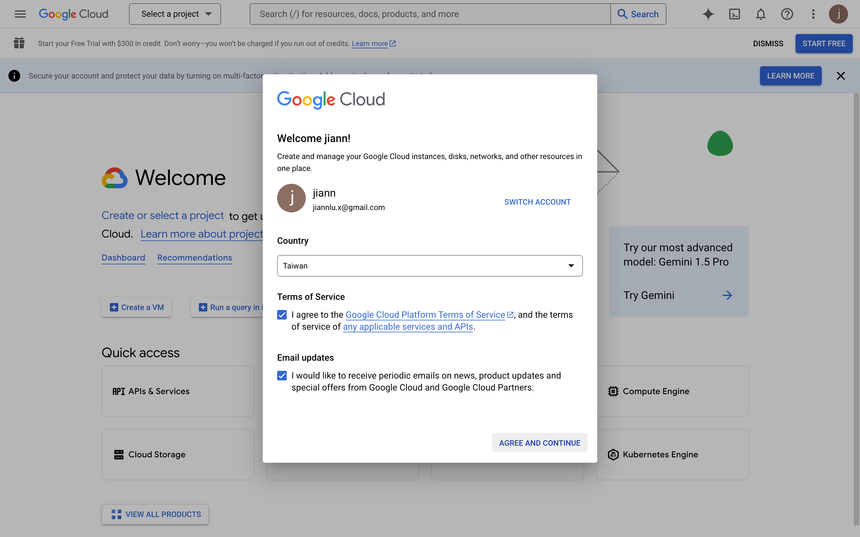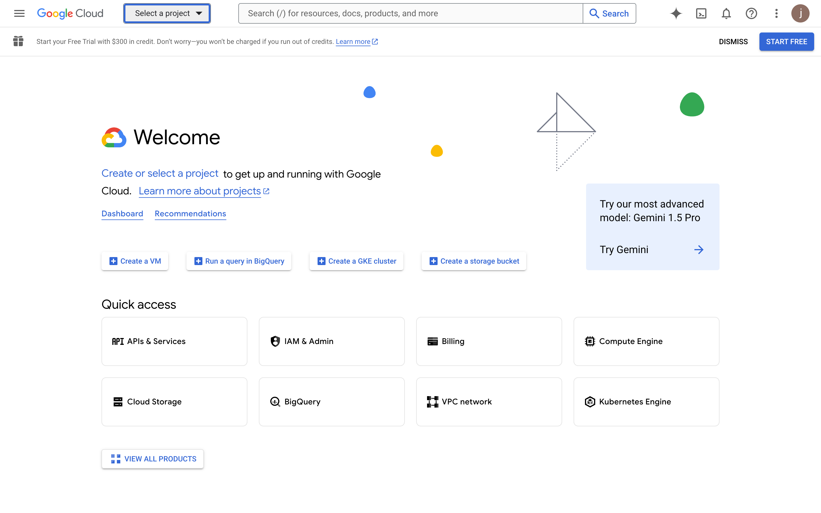 - Open https://console.cloud.google.com/welcome to go to Google Cloud.