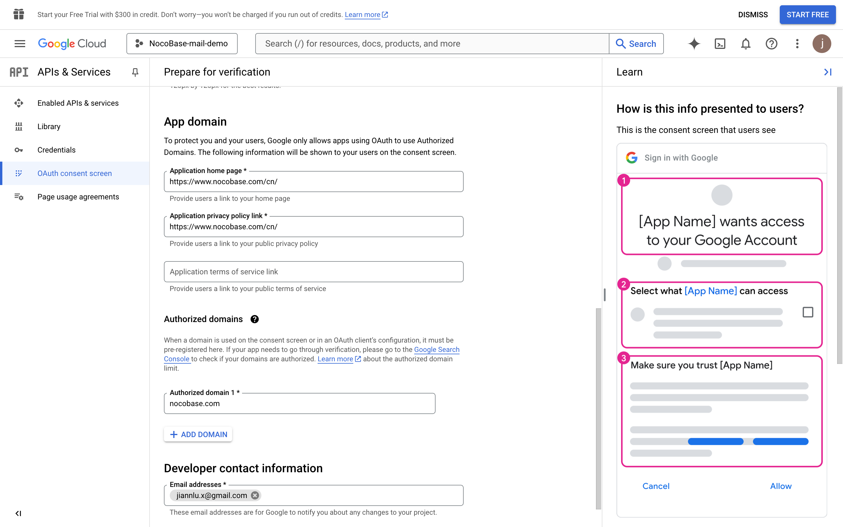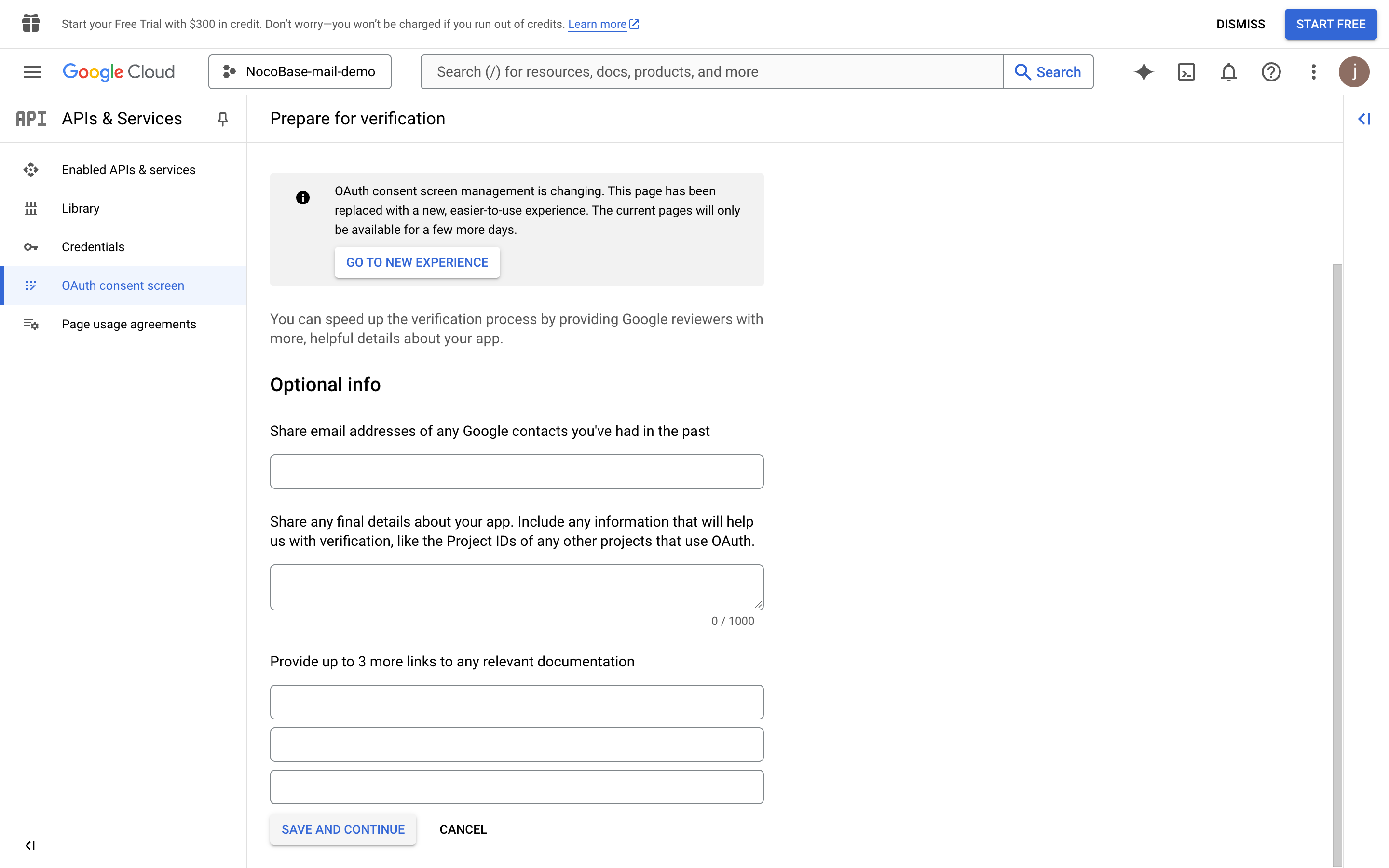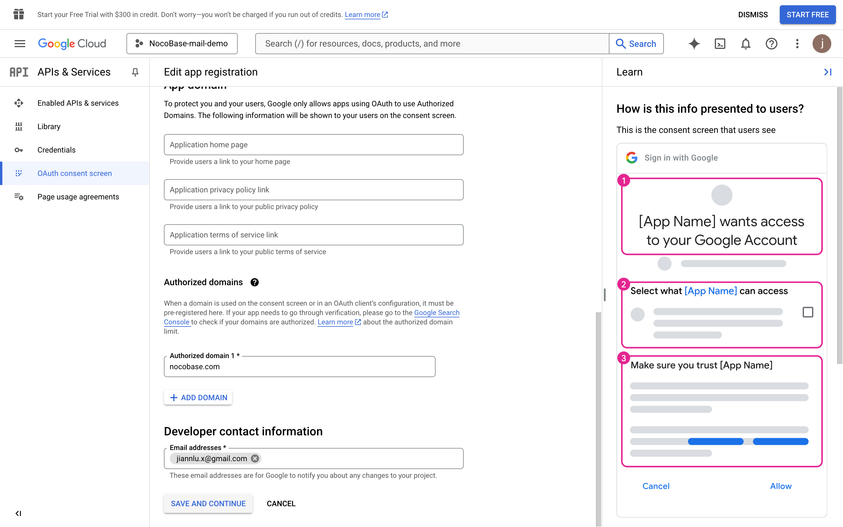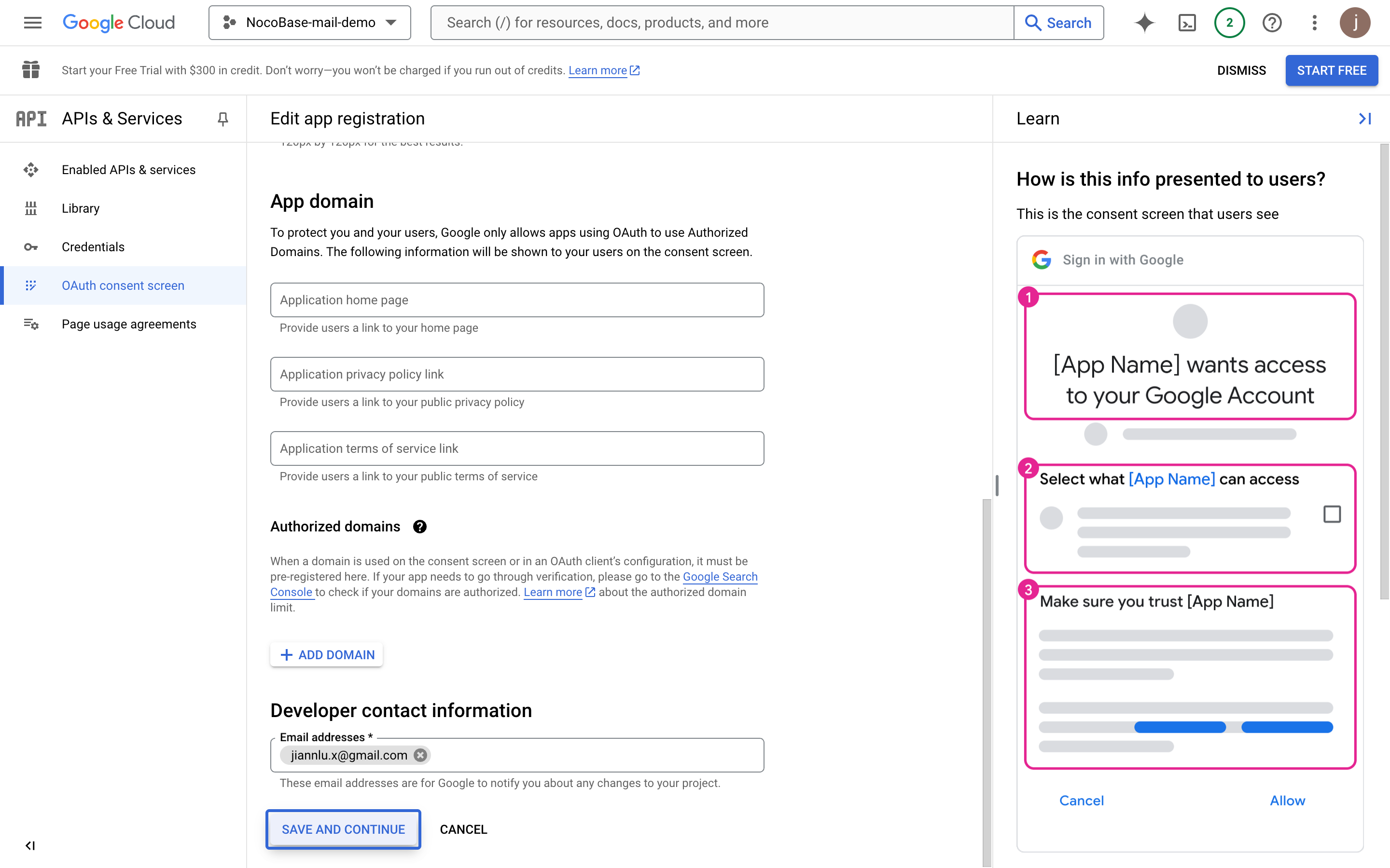 - Fill in the project information (this will be displayed on the authorization page) and click save.