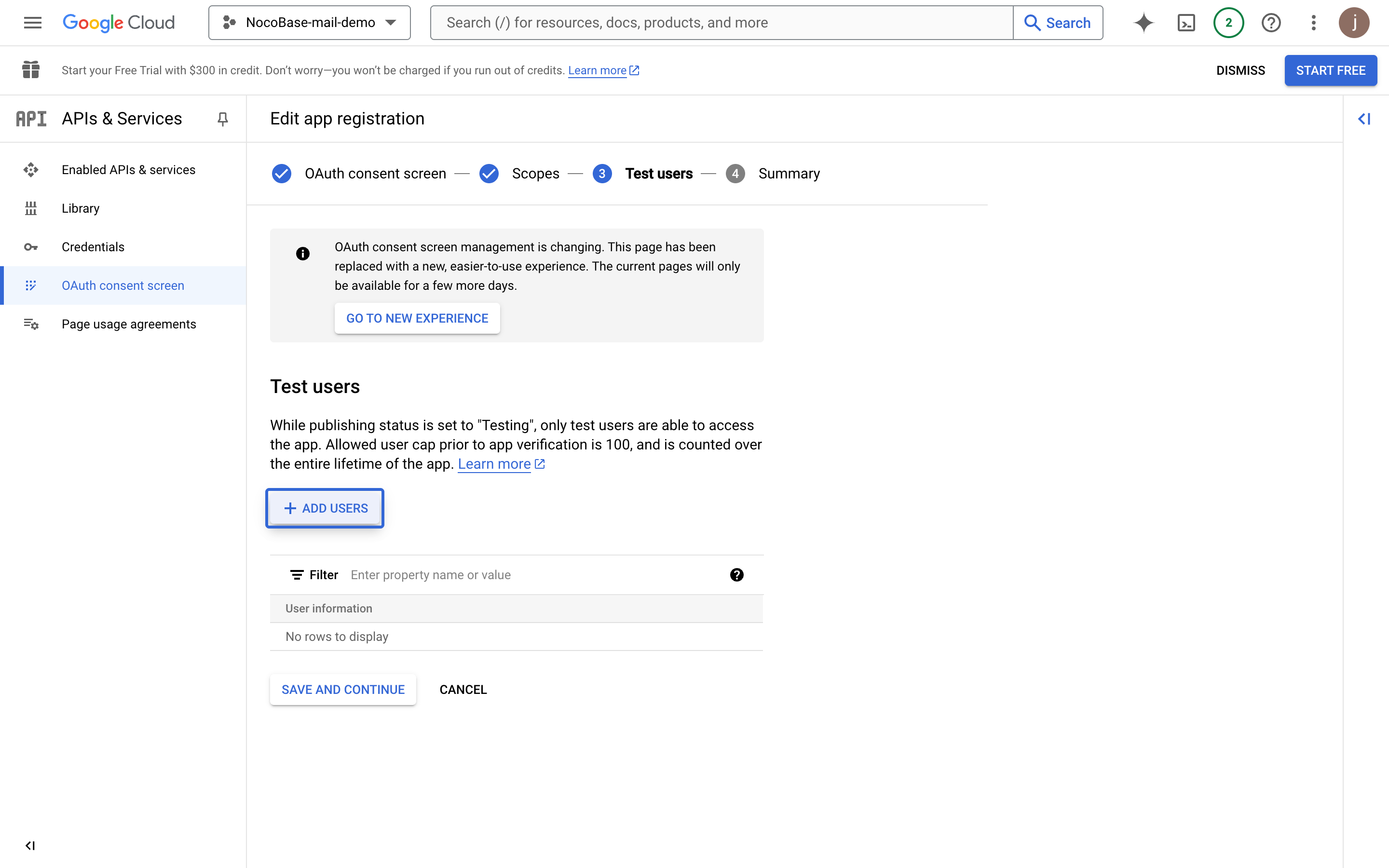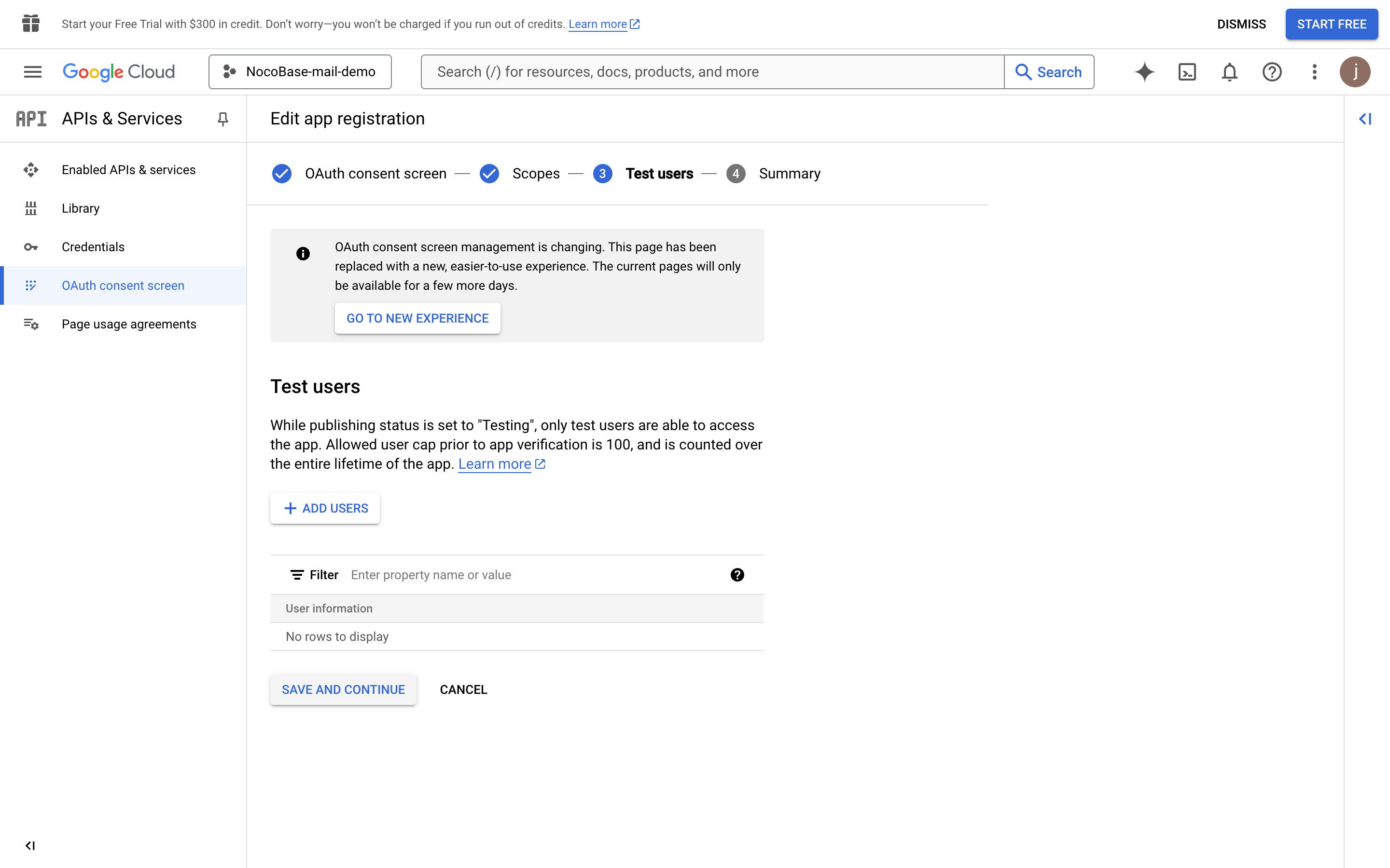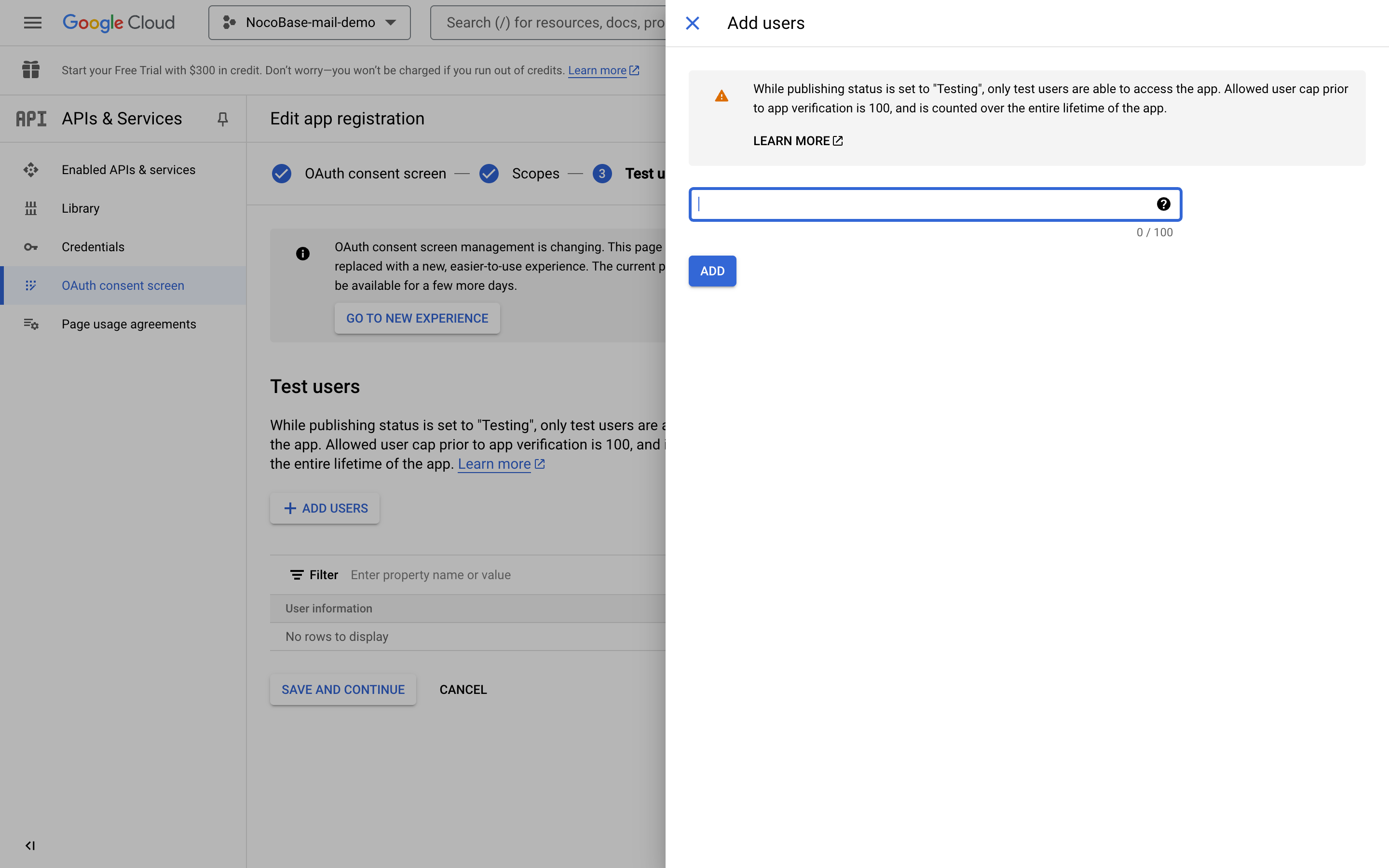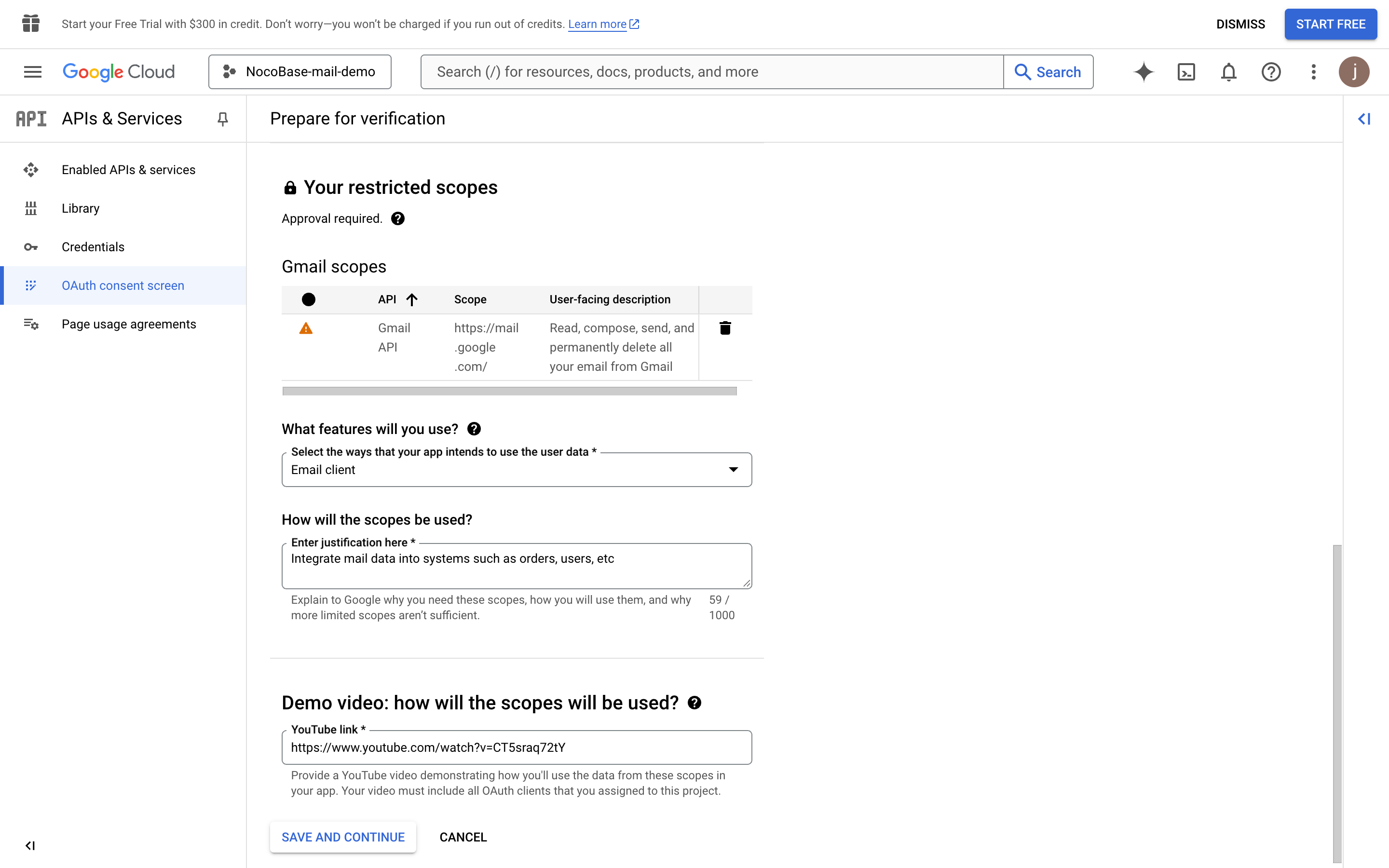 - Fill in the project information (this will be displayed on the authorization page) and click save.