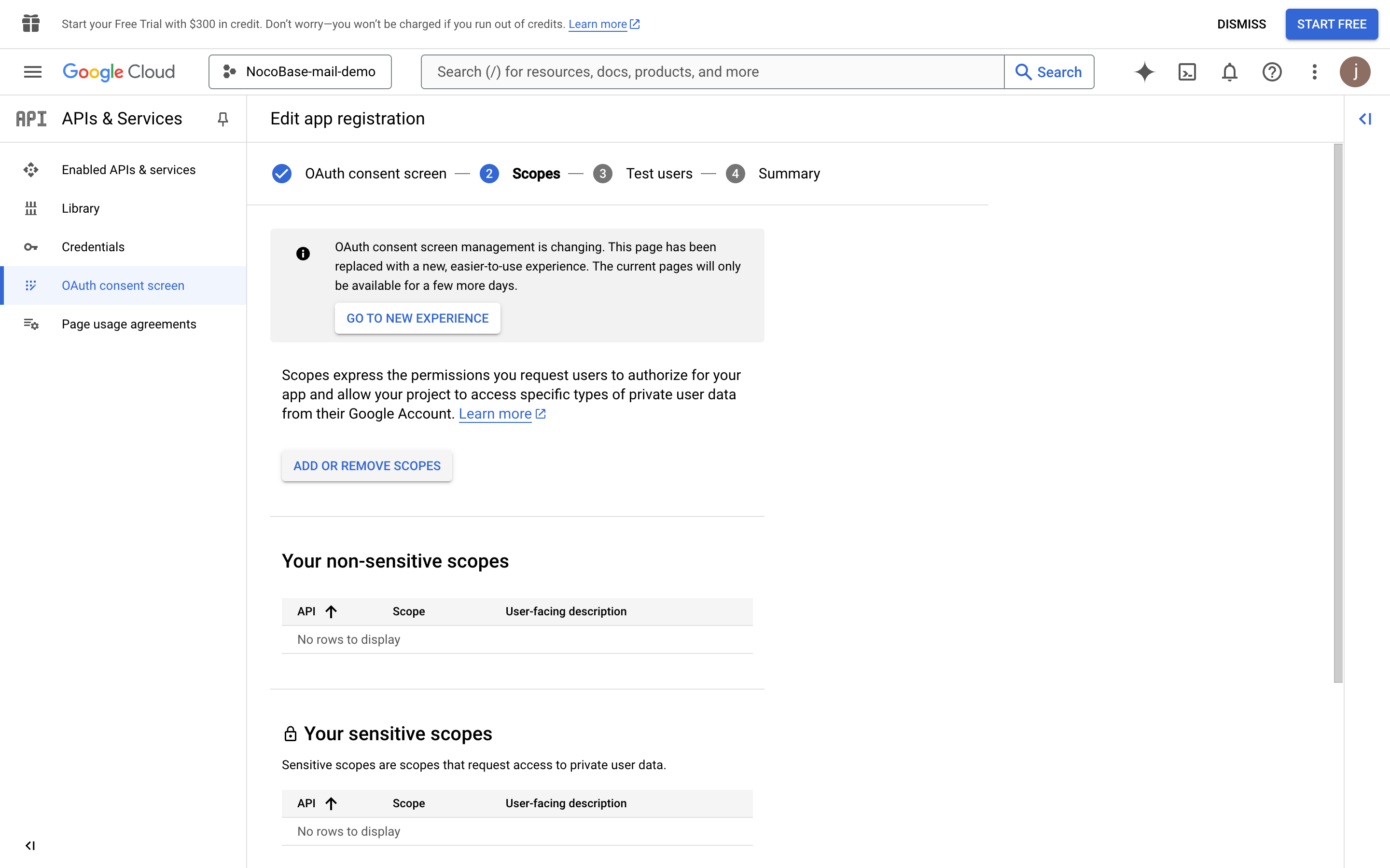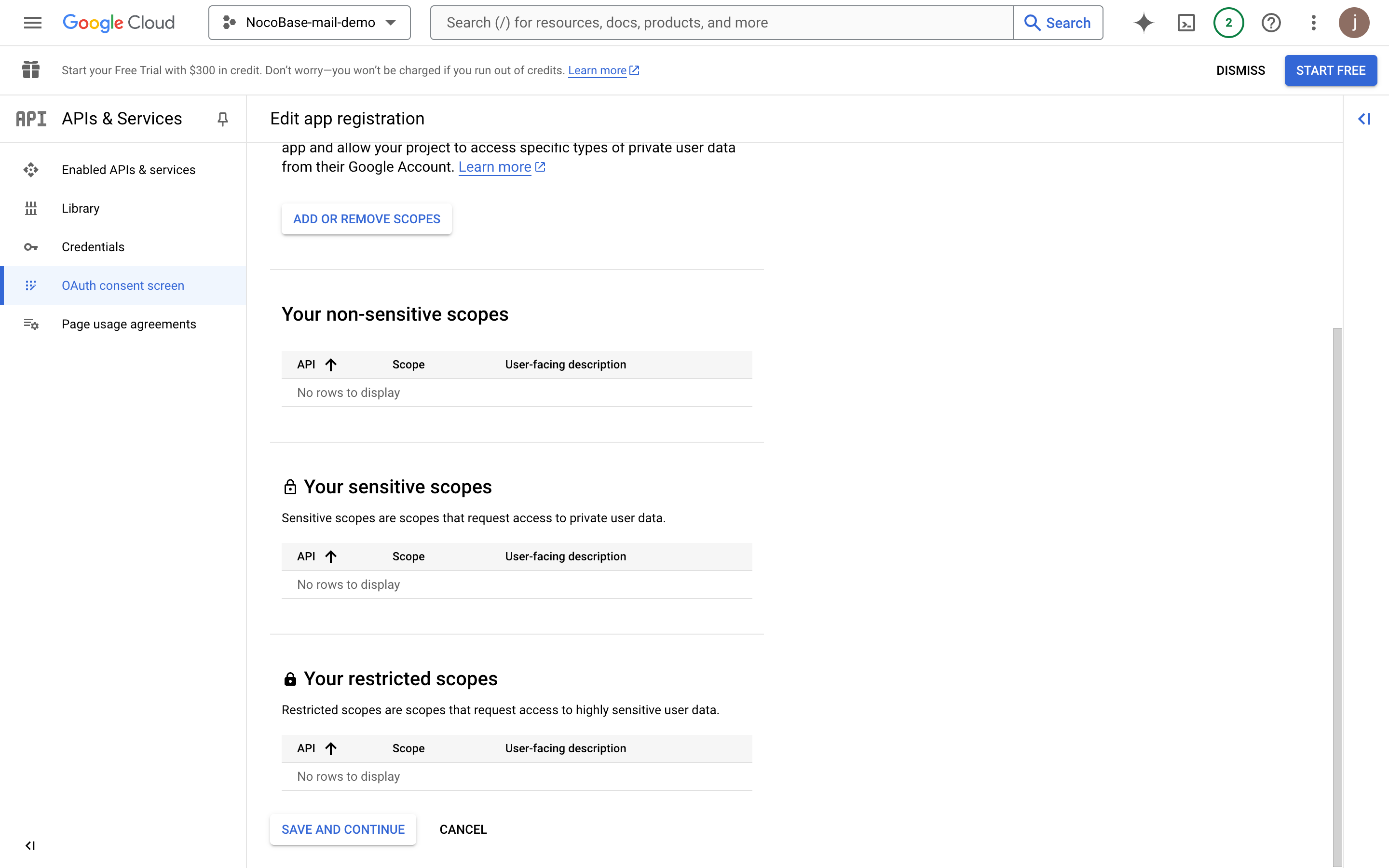 - Click the "ADD OR REMOVE SCOPES" button to select the user permission scopes.
