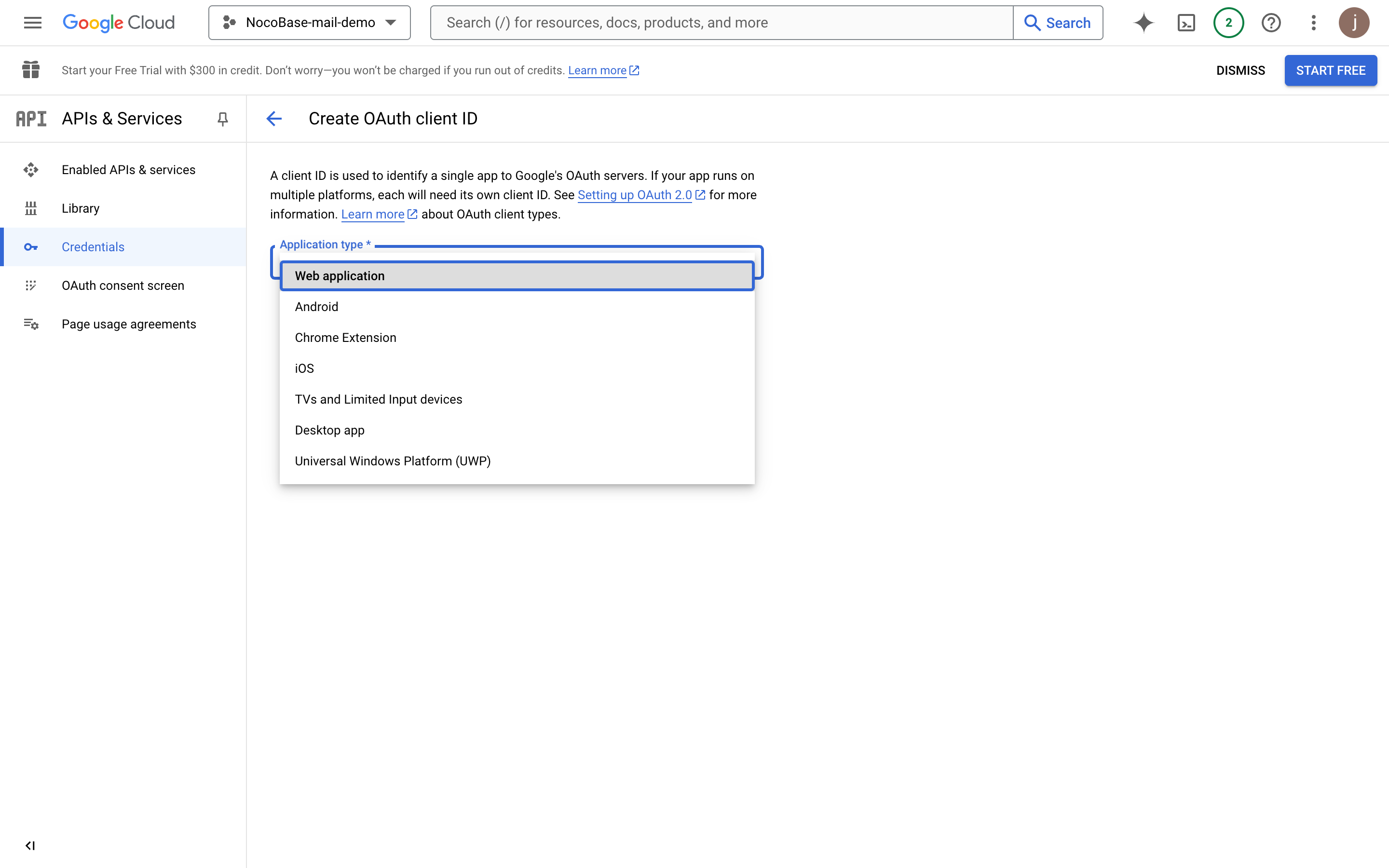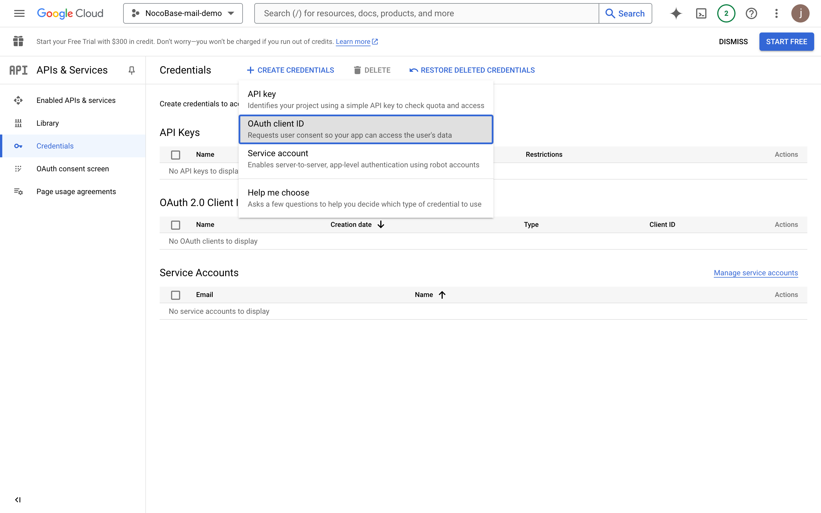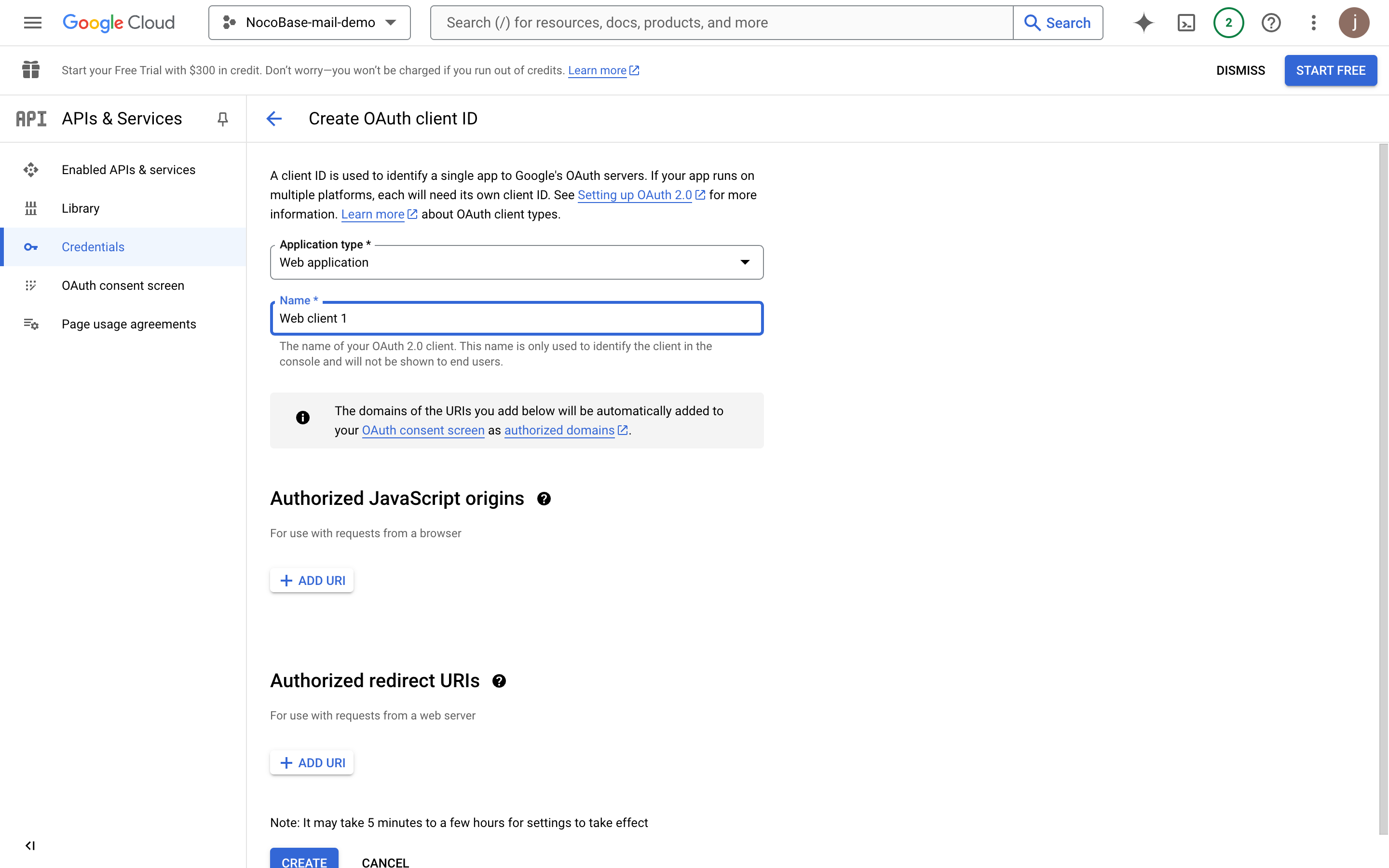 - Click the "CREATE CREDENTIALS" button and select "OAuth client ID".