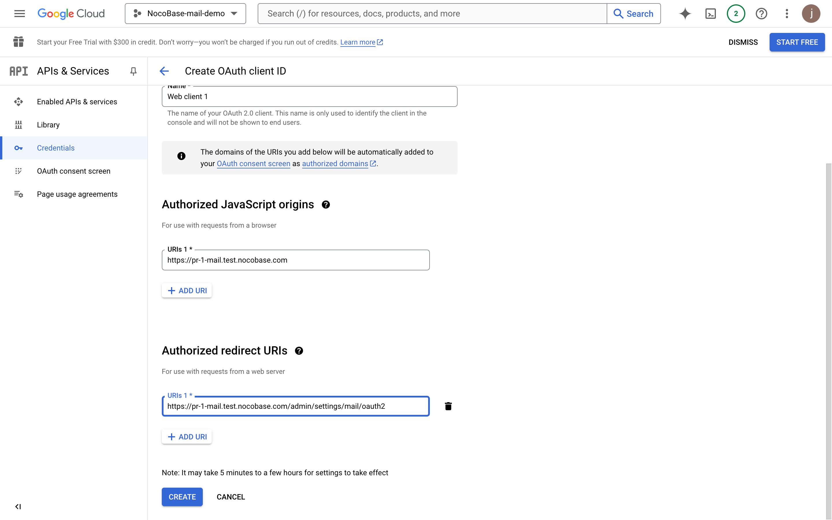 domain + "/admin/settings/mail/oauth2". For example: https://pr-1-mail.test.nocobase.com/admin/settings/mail/oauth2