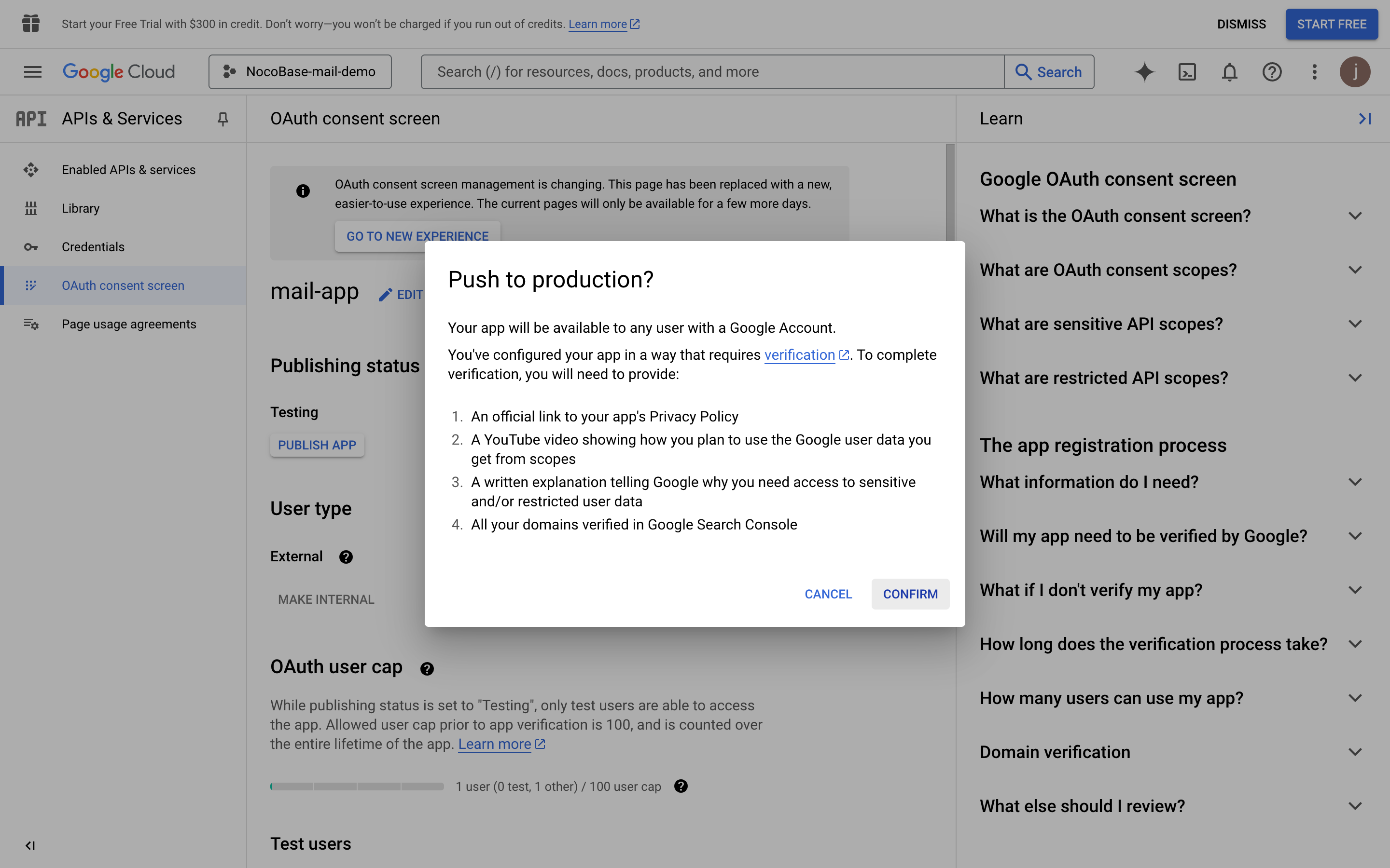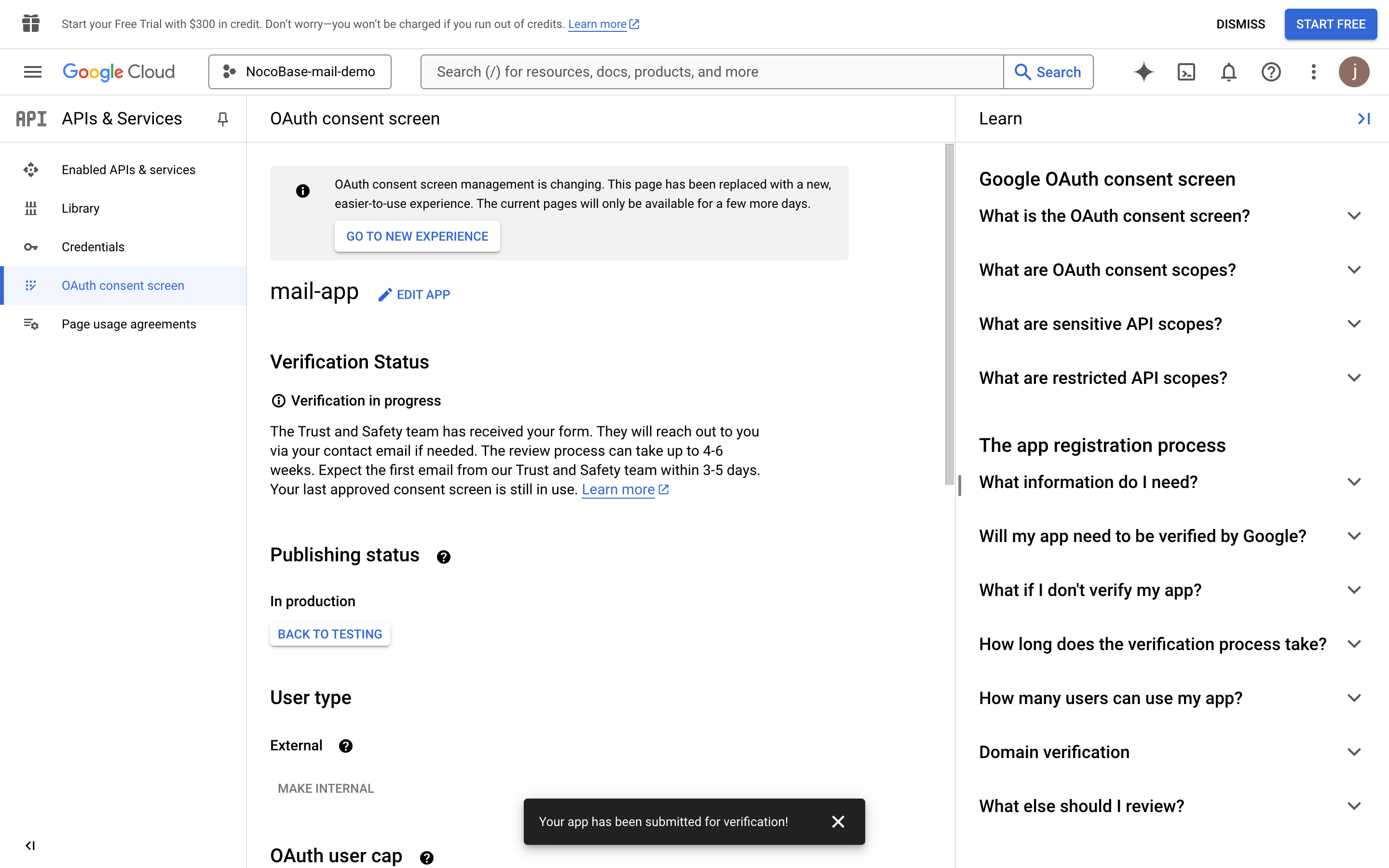 After completing the above process and testing features like test user authorization login and email sending, you can publish the app.