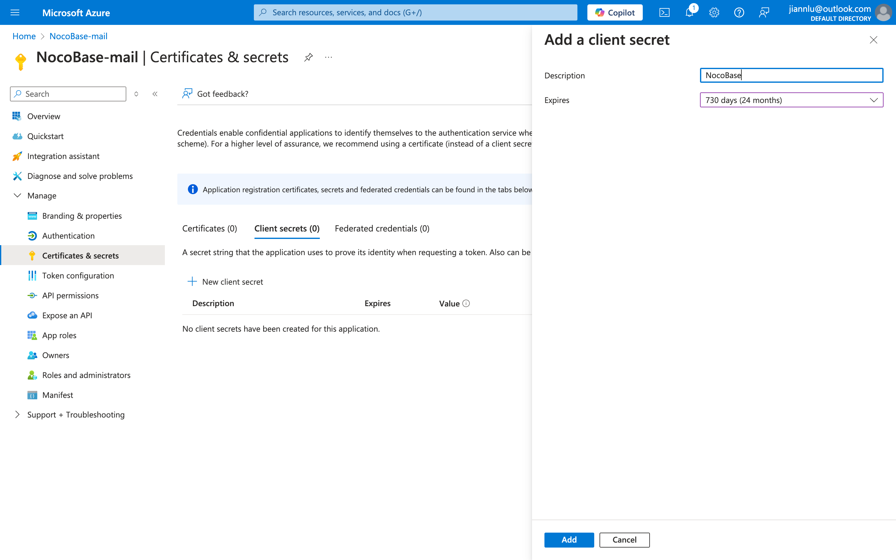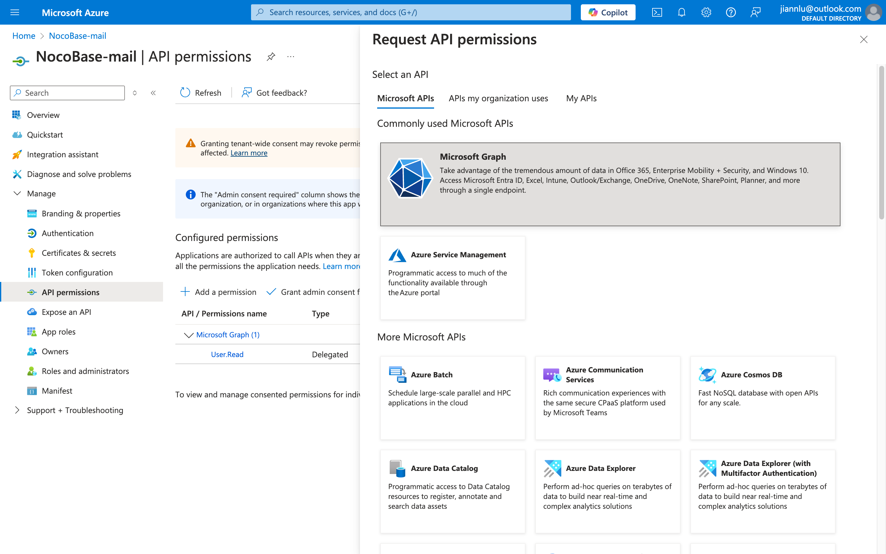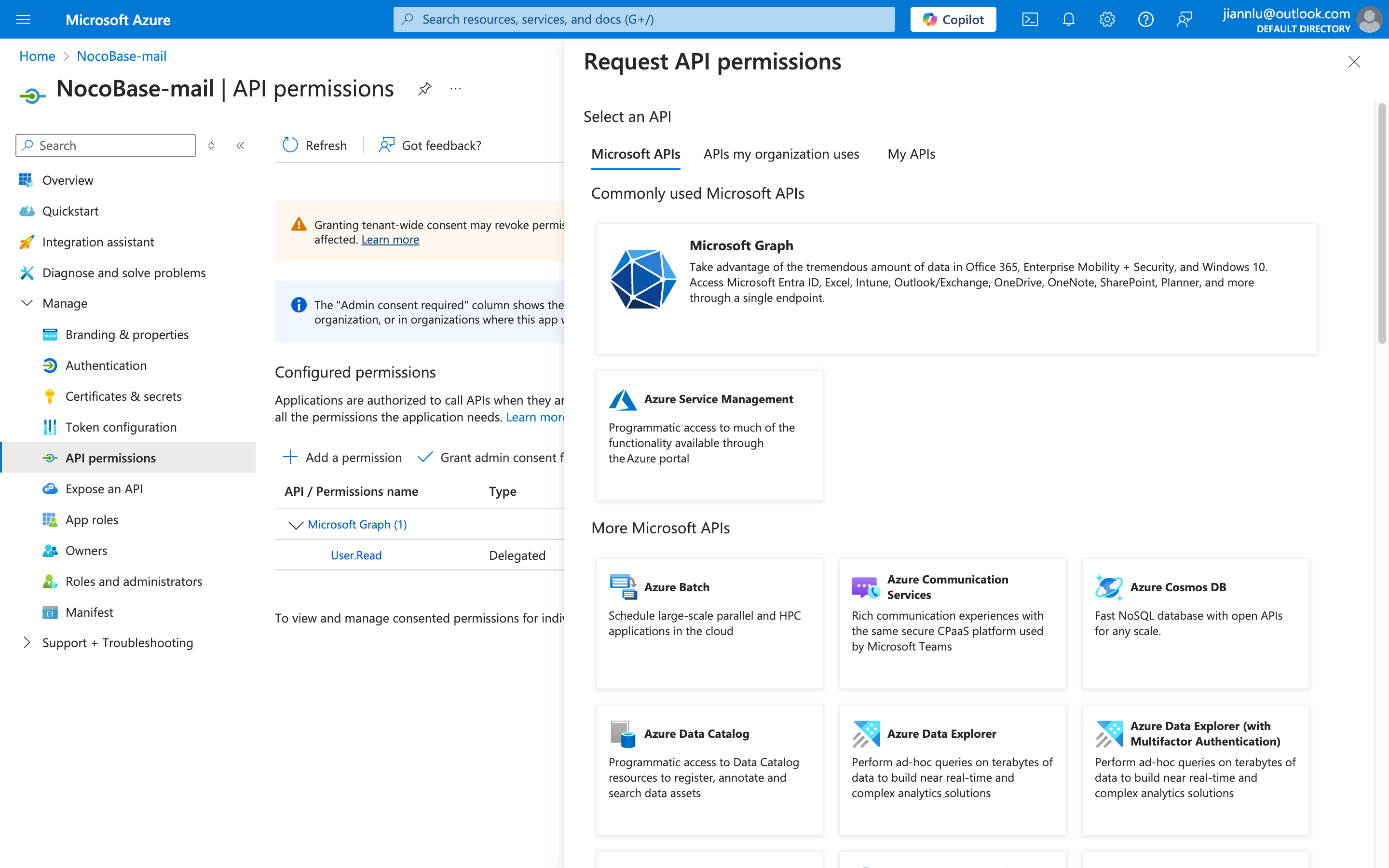 To allow users to connect their Outlook mailboxes to NocoBase, you must deploy it on a server that can access Microsoft services. The backend will call Microsoft APIs.