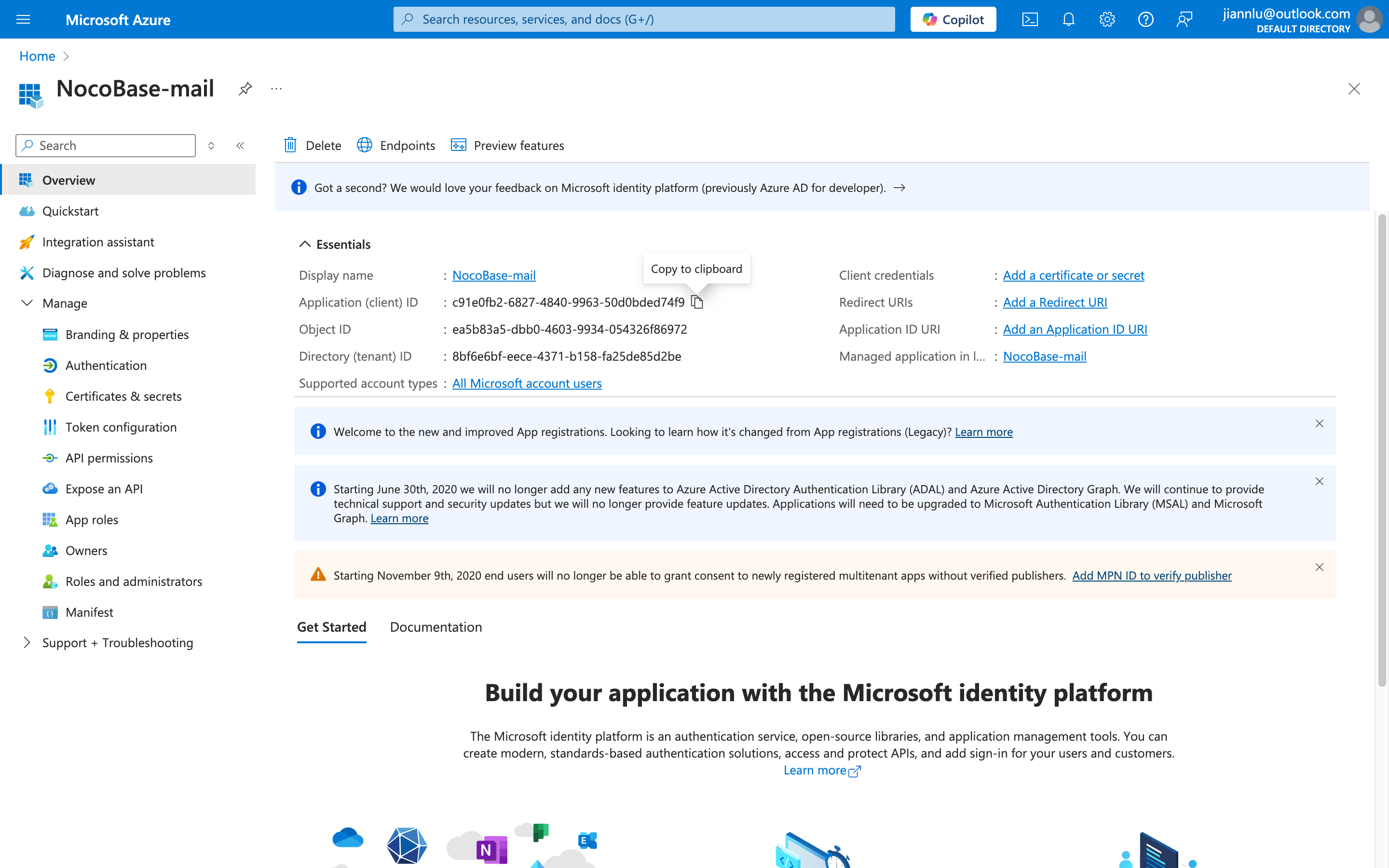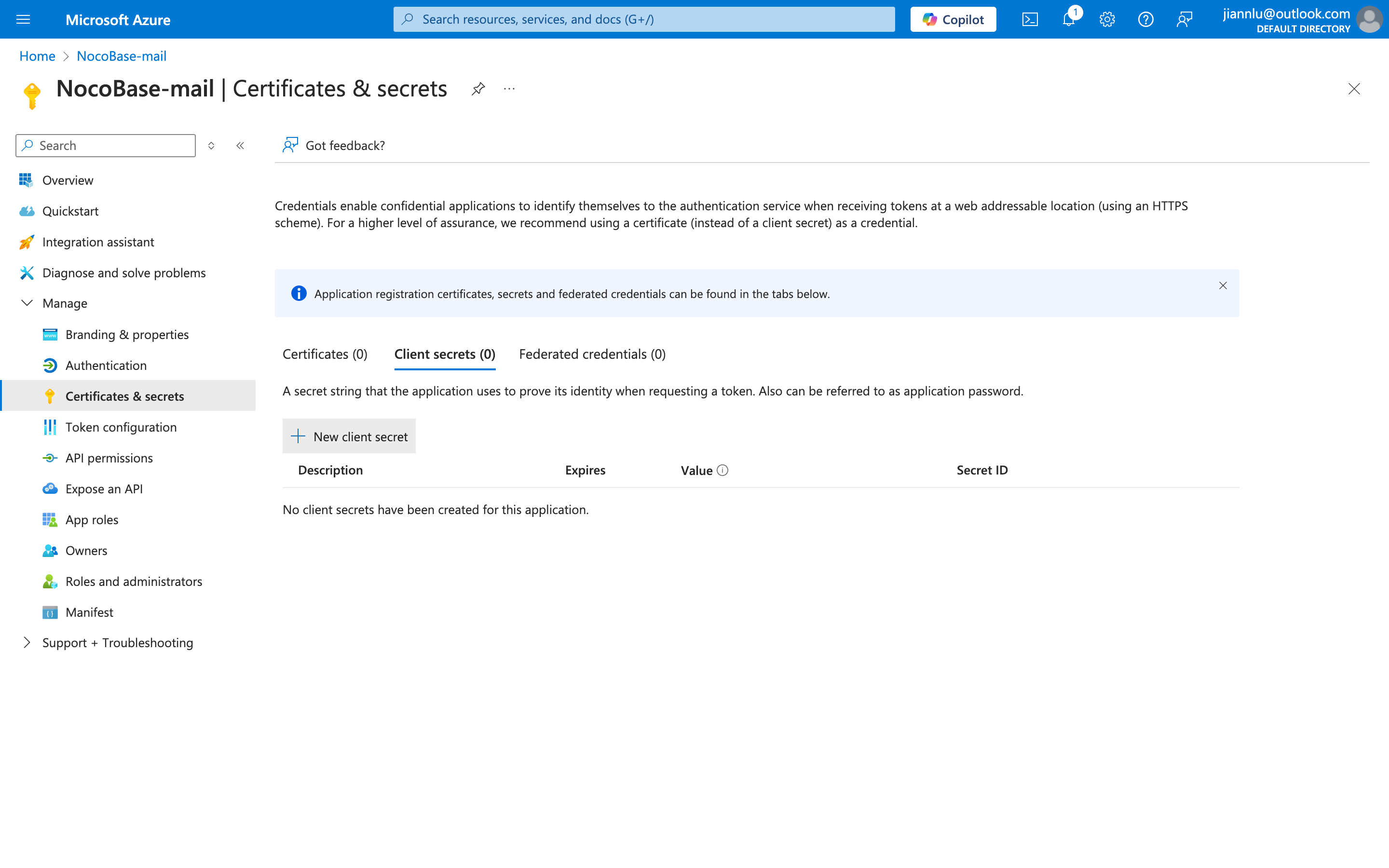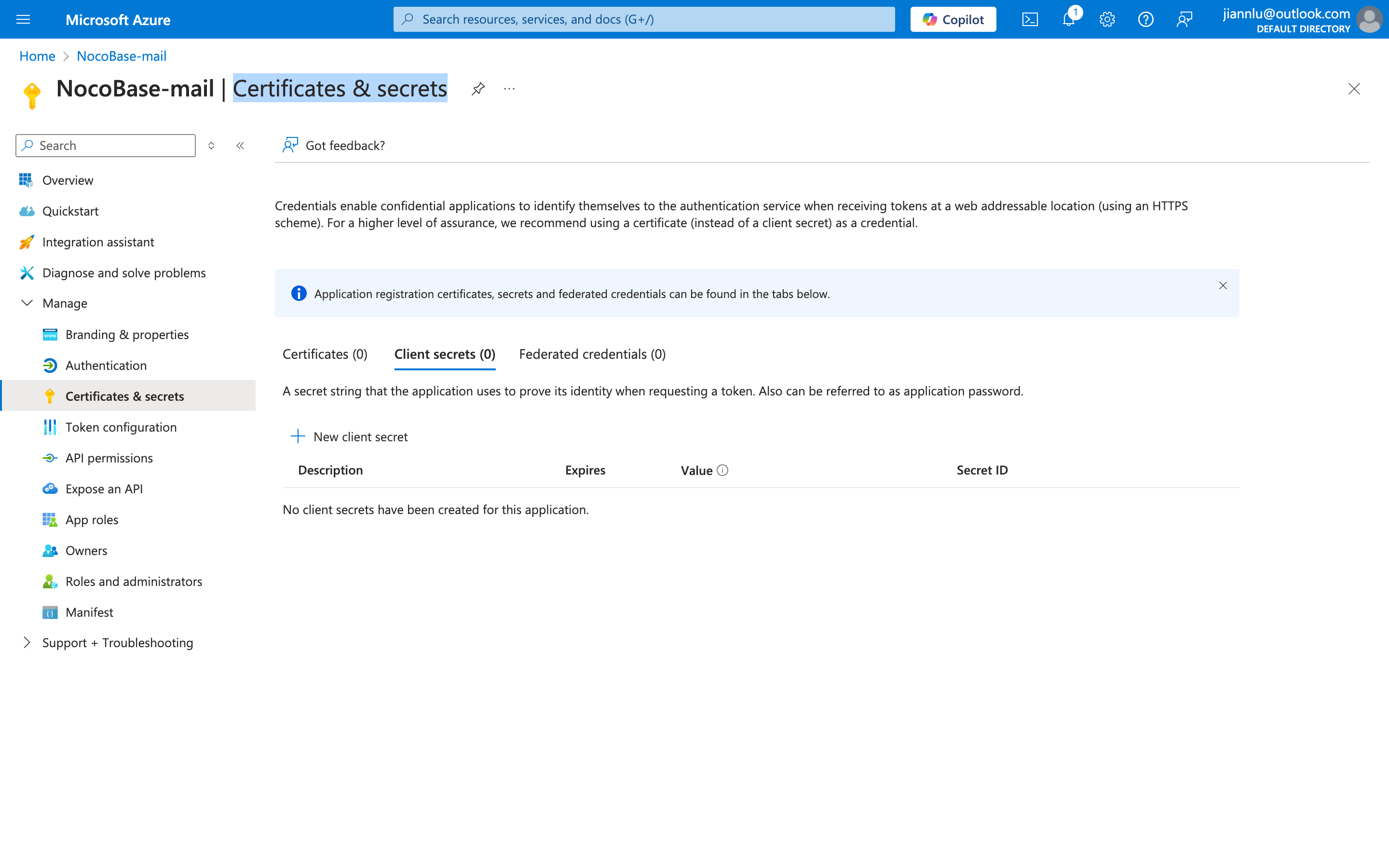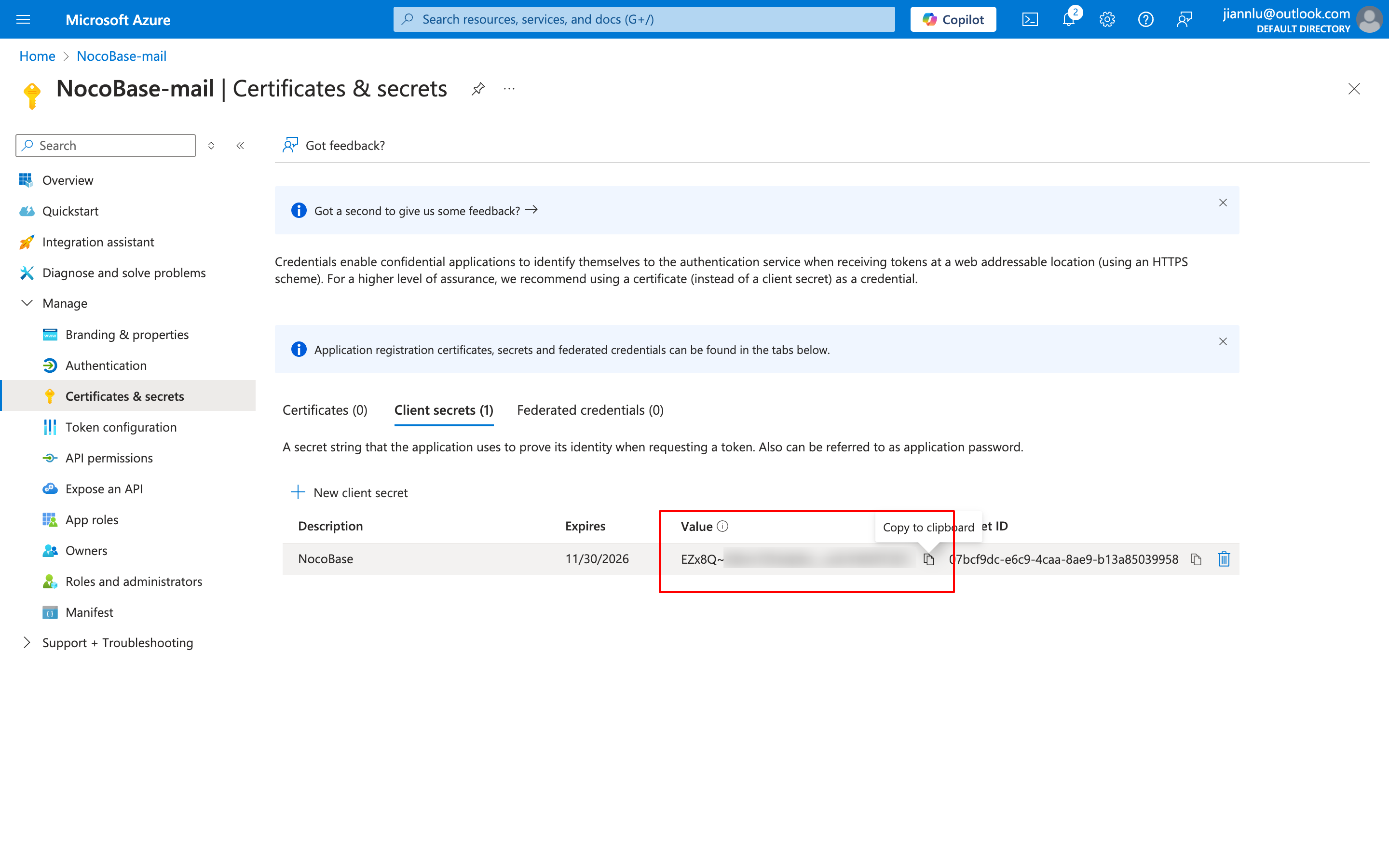 To allow users to connect their Outlook mailboxes to NocoBase, you must deploy it on a server that can access Microsoft services. The backend will call Microsoft APIs.
