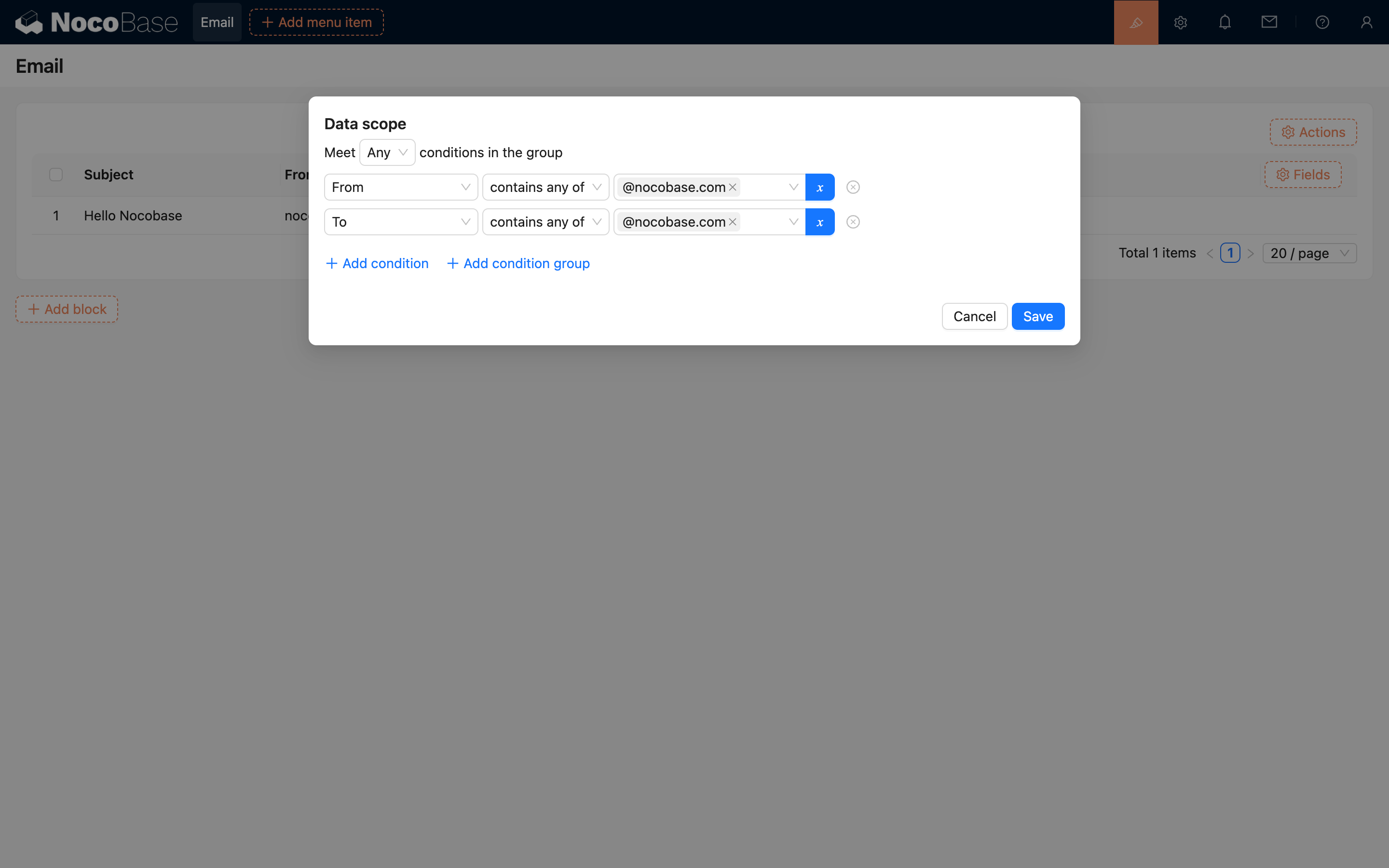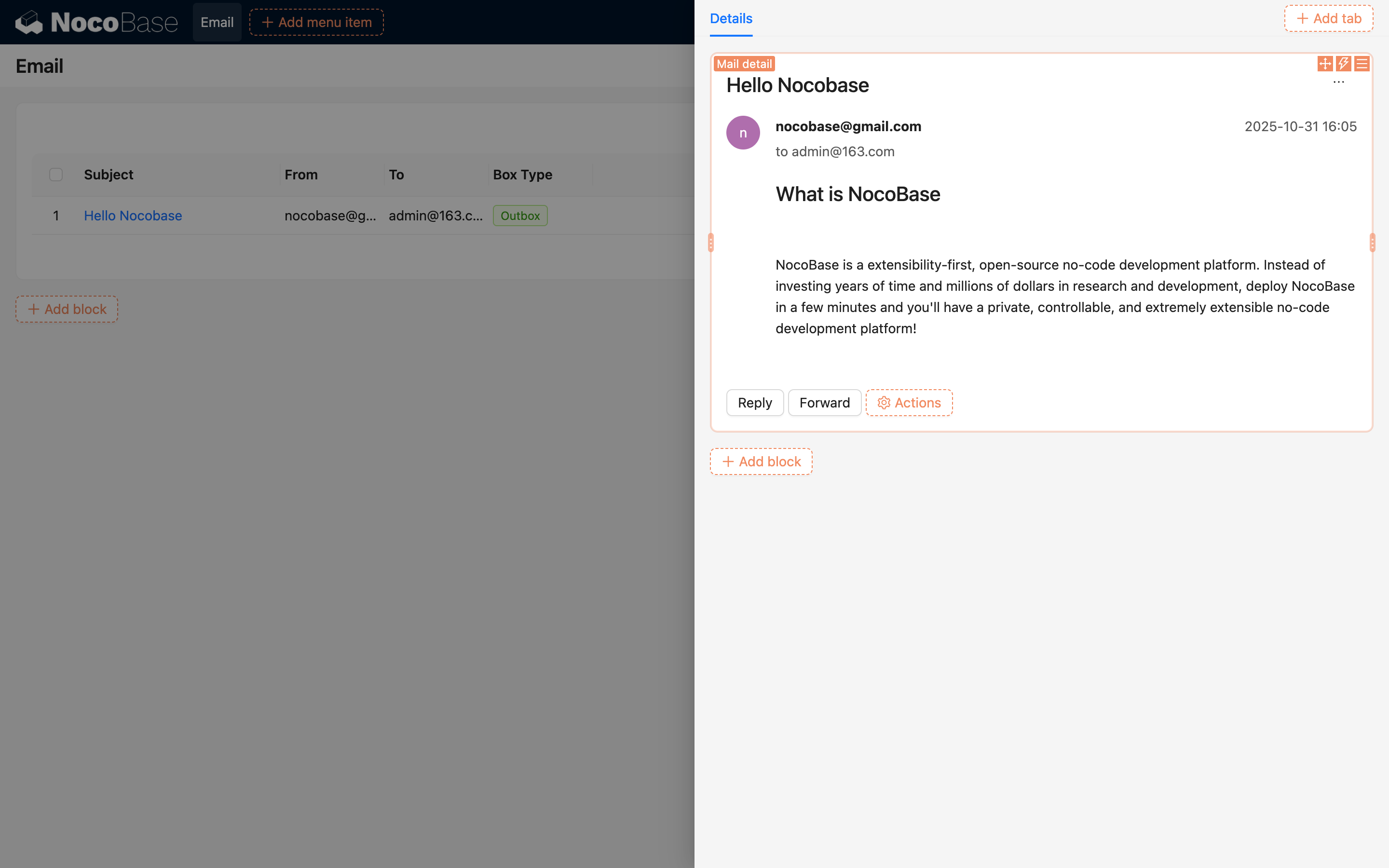 Each field in the email form is consistent with a regular form and can be configured with Default value or Linkage rules, etc.