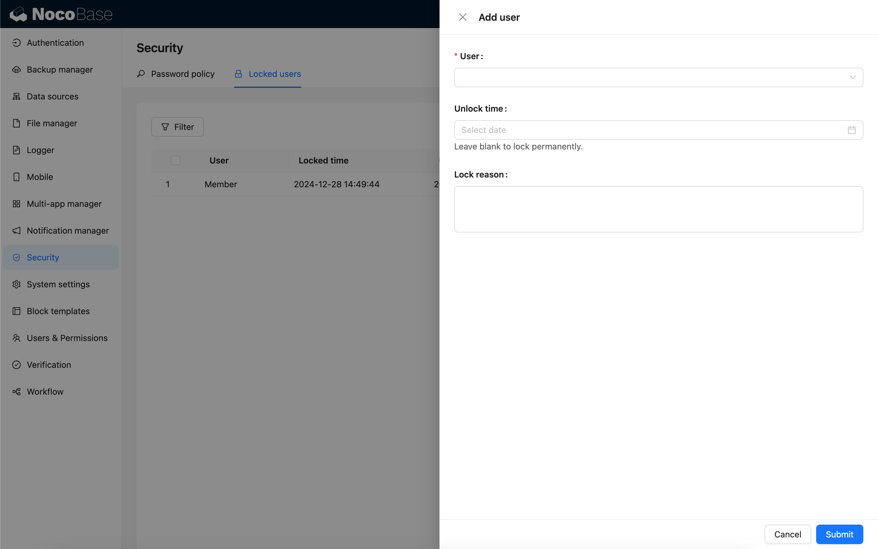 Adding a user record allows you to proactively lock a user. Once a user is locked, they will be prohibited from accessing the system through any authentication method, including API keys.