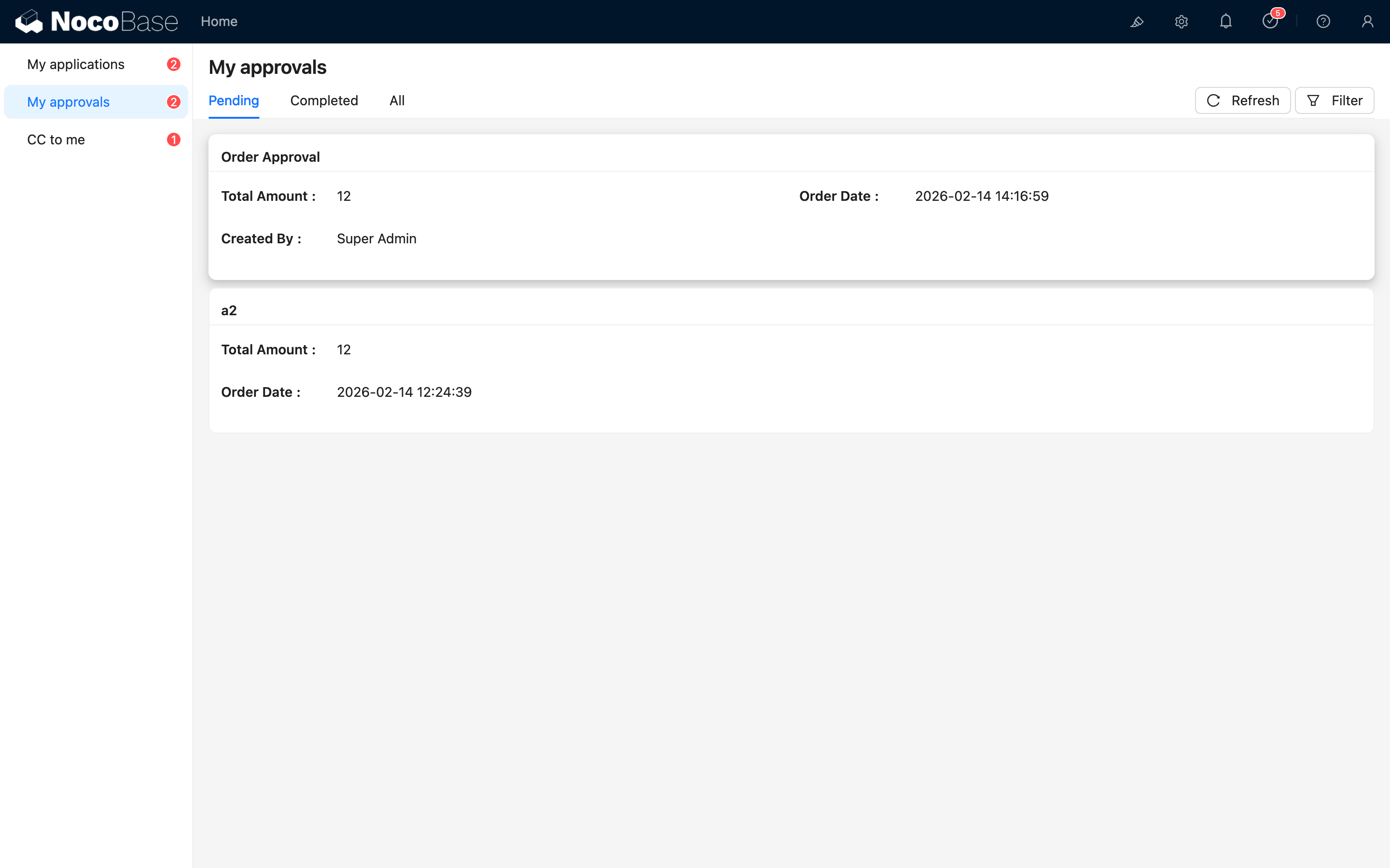 Onay bu düğüme ulaştıktan sonra, Yapılacaklar Merkezi listesinde özelleştirilmiş görev kartı görülebilir:
