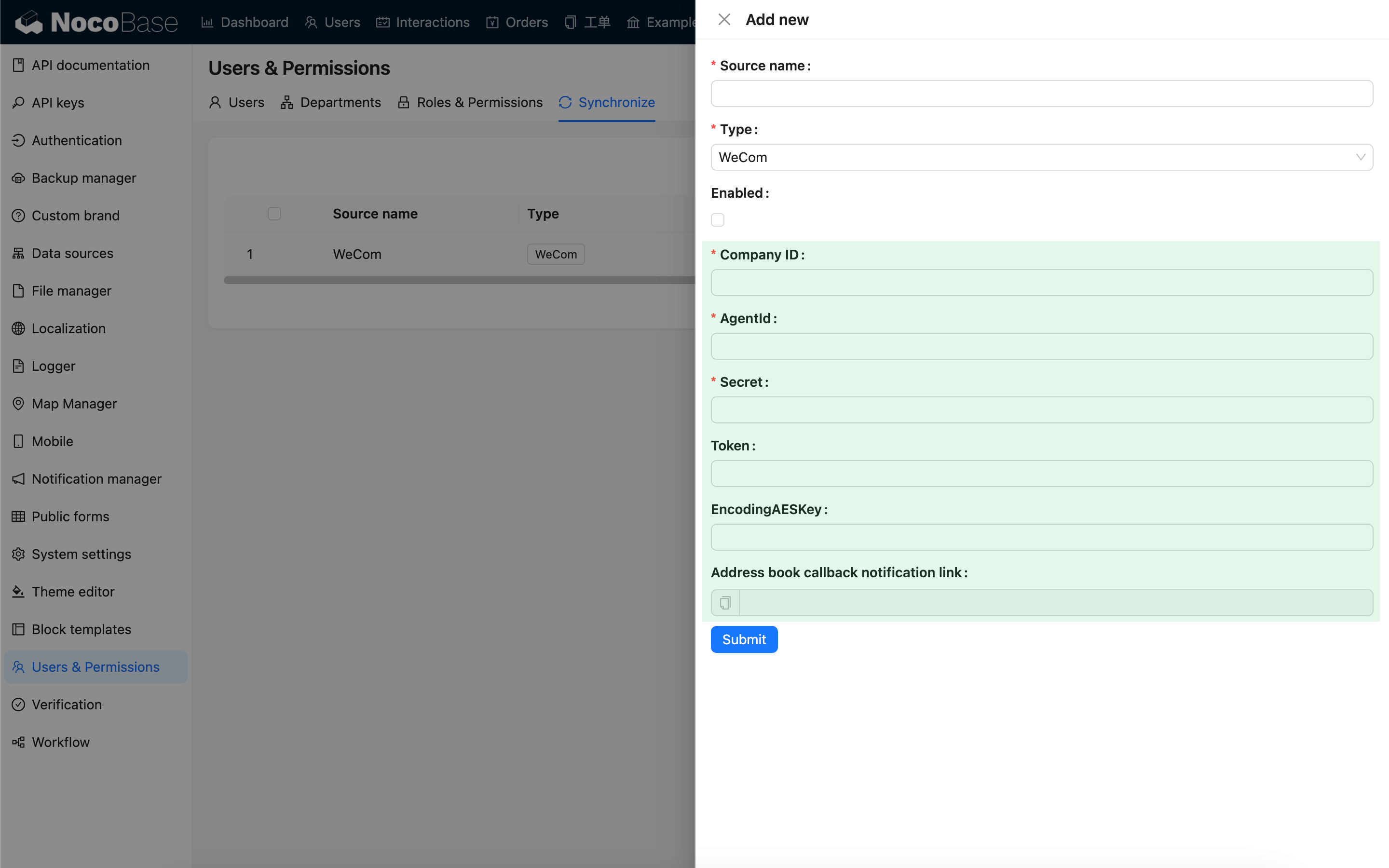 NocoBase allows users to extend data source types for user data synchronization as needed.
