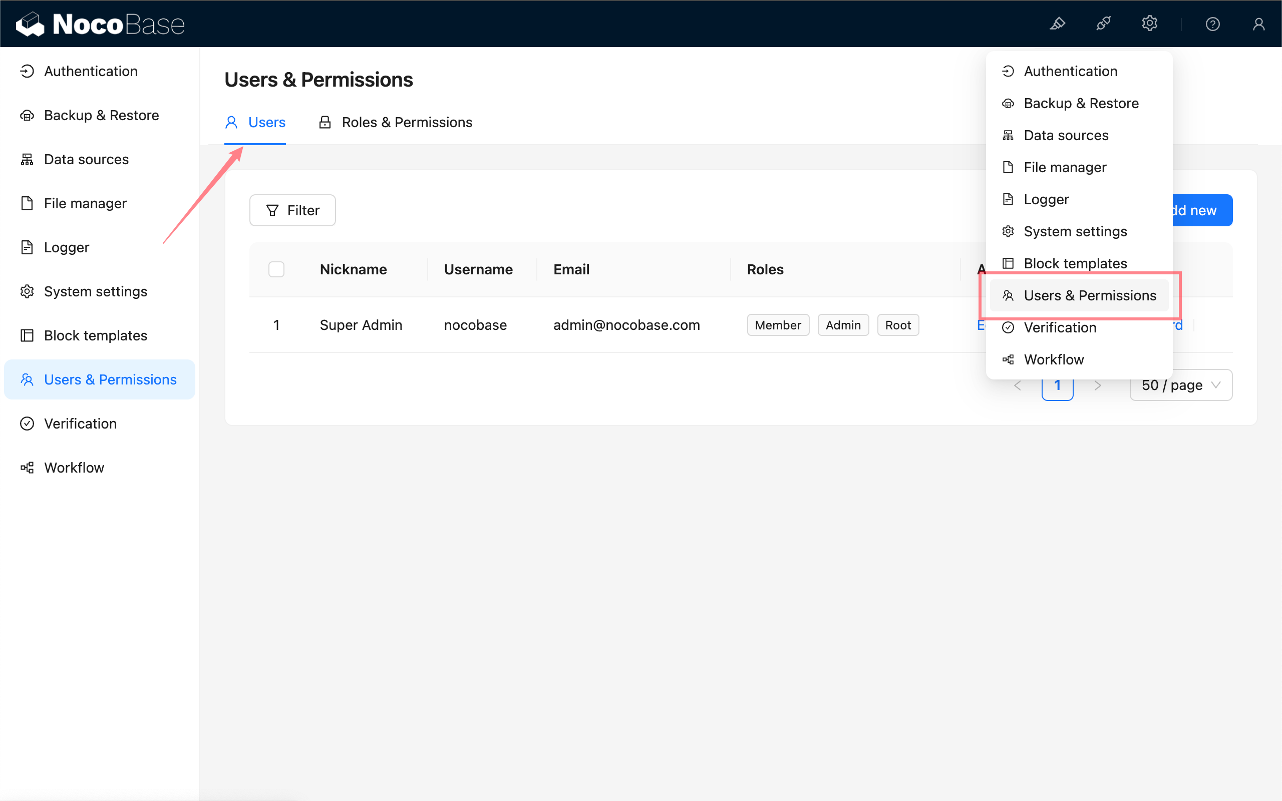 This plugin provides a user management interface in the configuration center. After initializing the application, an undeletable super admin account is automatically created. The super admin has root permissions and can access all resources.