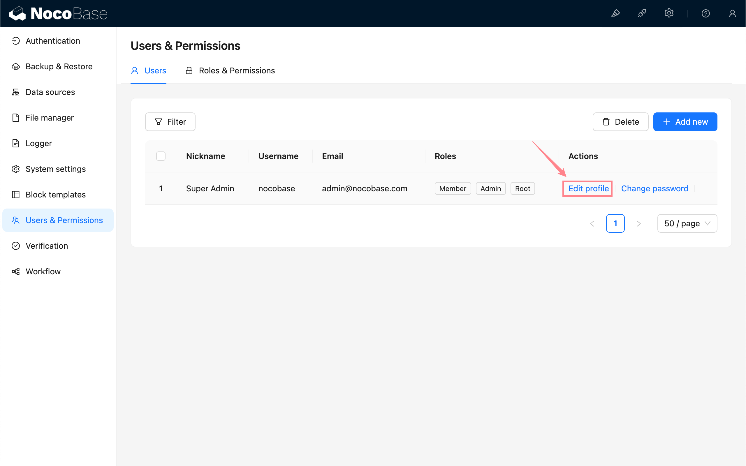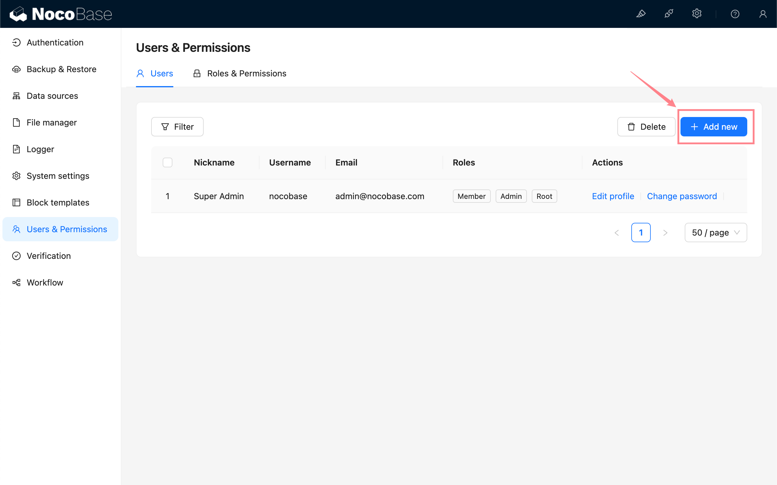 In addition, you can also add various different blocks of the Users collection to manage users, such as table blocks: